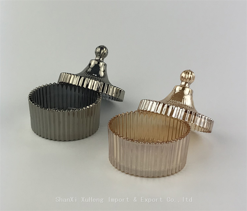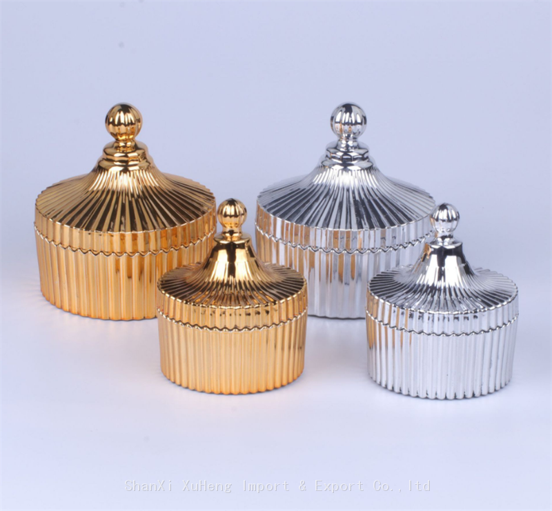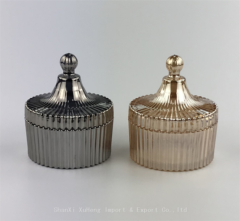 Home > Products > Glass Vase and Candle Holder > New Luxury 6 oz Electroplating Gold Silver Rose Gold Colorful Carousel Glass Candle Jar