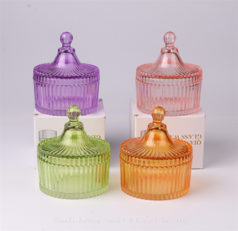 Wholesale Luxury Vintage Crystal Colorful Glass Candy Jars Storage Jar Candle Container With Lid For Festival Use