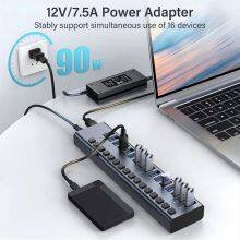 - 10 Ports USB3.0 Hub for PD Data Transfer With Switch Industrial Usb Hub Supplier