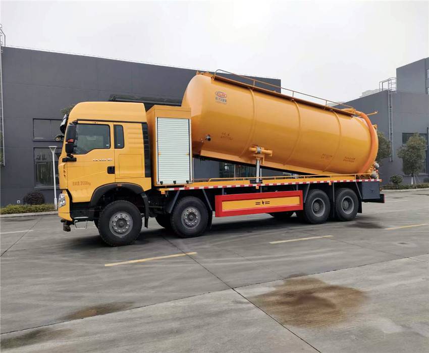 Dongfeng Tianlong 465 horsepower National VI engine, original double-layer beam, DDI 465 horsepower 6-cylinder engine, Shaan Gear 12 speed transmission, 2050+4400+1350 wheelbase, 5.5T/13T front and rear axles, 295 vacuum tires, original ABS, with directional assistance, clutch booster, air brake, and air conditioning. Upper configuration: The volume is about 33 cubic meters, the water volume is about 10 cubic meters, and it is sewage. The tank head is 8mm thick. The anti slip platform at the top of the tank is equipped with a floating anti overflow valve. The high-pressure cleaning part adopts a 330L flow rate high-pressure pump, and the high-pressure pipe from the pump outlet to the winch adopts a 32mm through-hole pipeline. The hydraulic reel is used, which swings left and right, and the pipe is released and collected. The rear head can rotate the hydraulic winch. The high-pressure pipe is 100 meters long, 25mm diameter, and high-pressure double-layer steel wire pipe with a pressure resistance of 22mpa.