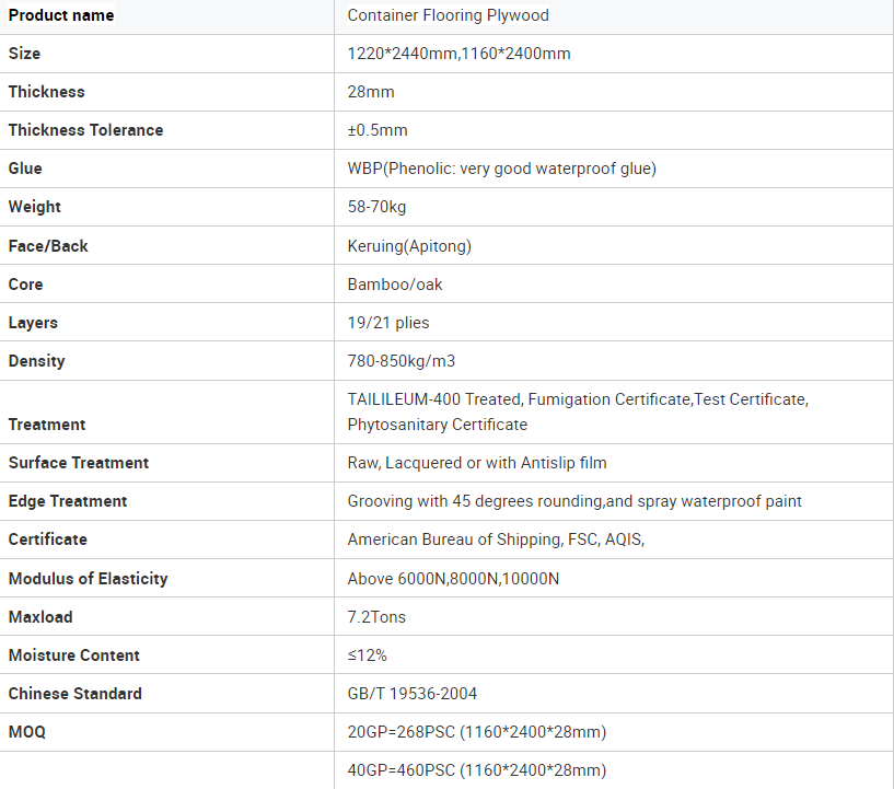28mm Thickness Container Flooring Plywood With Hardwood, Bamboo Core