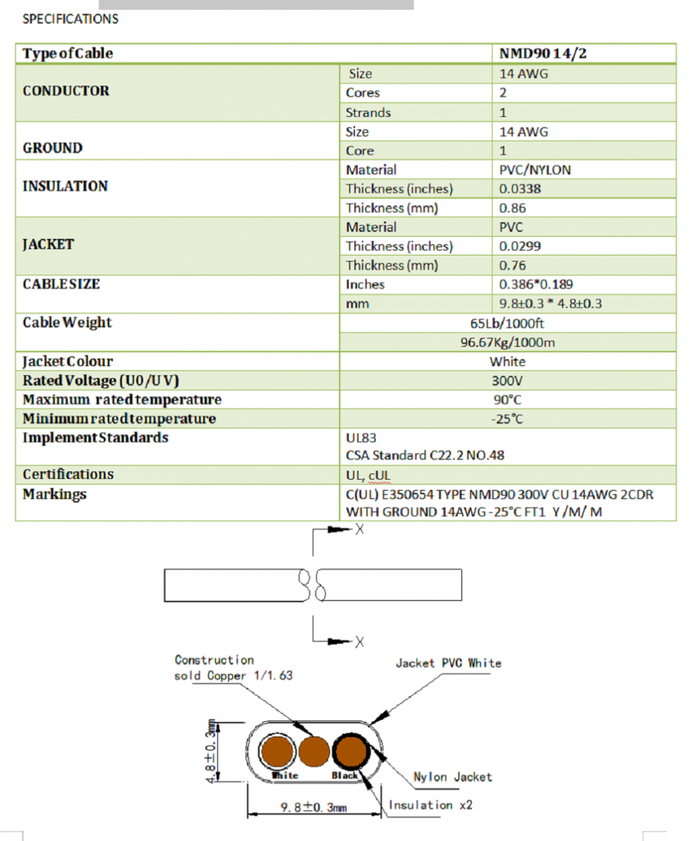 Canada NMD90 14/2 12/2 Non-metallic Sheathed Cable