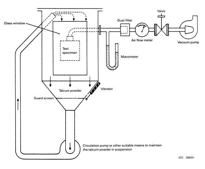Dust chamber is for IP5X and IP6X testing, the powder shall be able to pass through a square-meshed sieve the nominal wire diameter of which is 50μm and the nominal width of a gap between wires 75 μm.