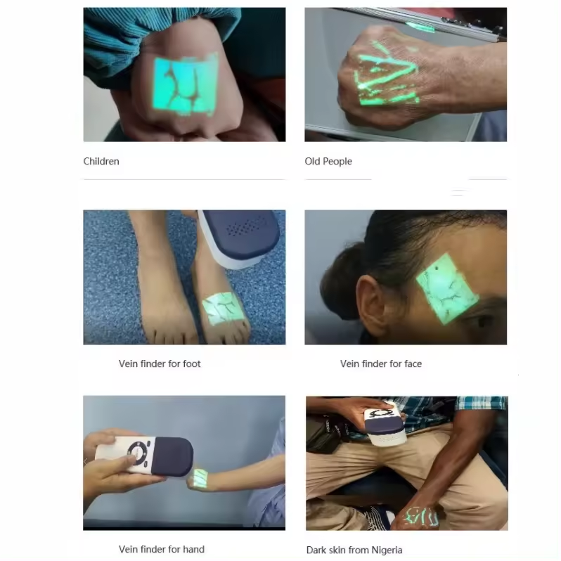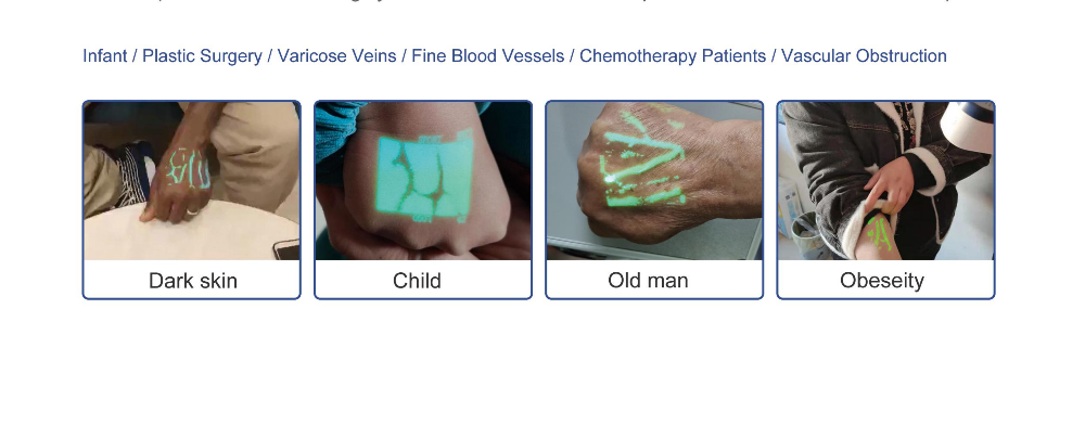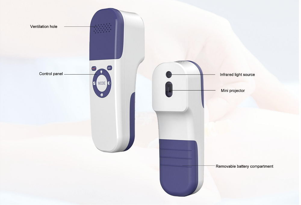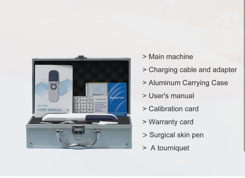 This machine has various user-defined functions, which can adapt to diferent ages, bodyshapes, skin colors,weights and various operating environments. *7 Colors Available: Suitable for different skin colors or environments. *3 Sizes Available: Suitable for adults, children and newboms *5 Levels of Brightness: Adjust the projection image to the most comfortable brightness. *Inversion: Reduce am hair interference and make blood vessels clearer. *Enhancement Mode: Enhance the clarity of blood vessel detection. *Sleep Mode: enter into low power mode when the user needs short intervals and can be waked up quickly *Power monitoring: Real-time monitoring of battery power and projection of remaining power, alert the user