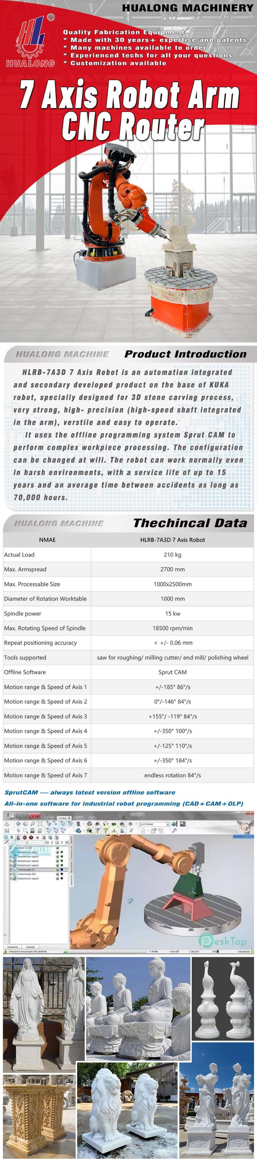 HLRB-7A3D 7 Axis Robot is an automation integrated and secondary developed product on the base of KUKA robot, specially designed for 3D stone carving process, very strong, high- precision (high-speed shaft integrated in the arm), verstile and easy to operate.