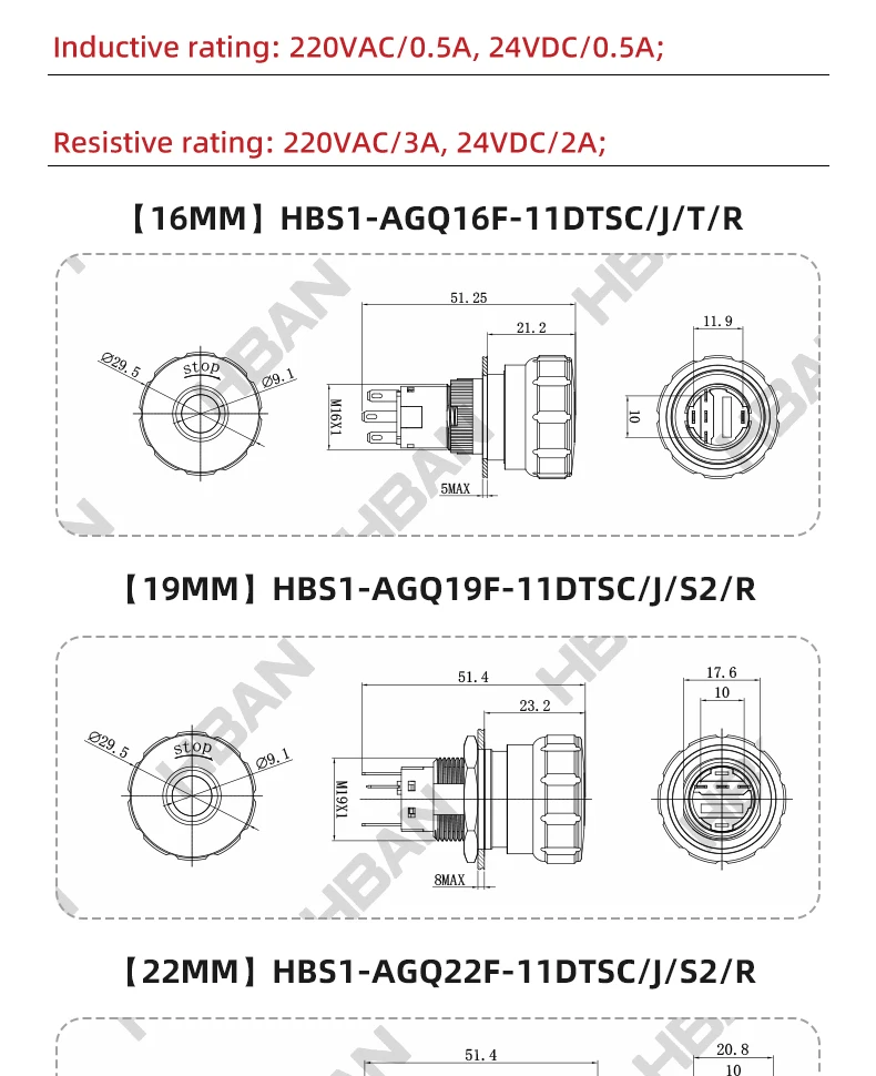 | Model Number | HBS1-AGQ16F-11TSC/J/T/R | Protection Level | IP67 | |