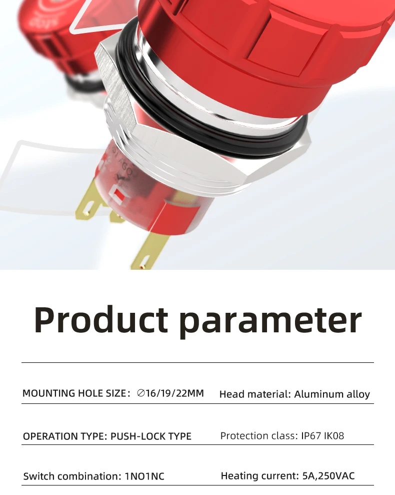 - 19mm 1no1nc 2no2nc Emergency Stop Push Button Ip67 for Charging Pile