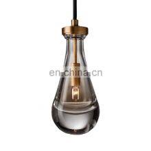 Modern Simplicity All Copper Water Drop Glass Chandelier Single Pendant Lamp for Bar Restaurant Bedroom Bedside