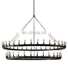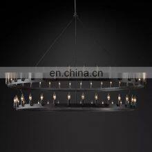 Industrial Design Classic Black Circular LED Chandelier Double-Layer Decorative Suspended Light for Hotel Villa Restaurant