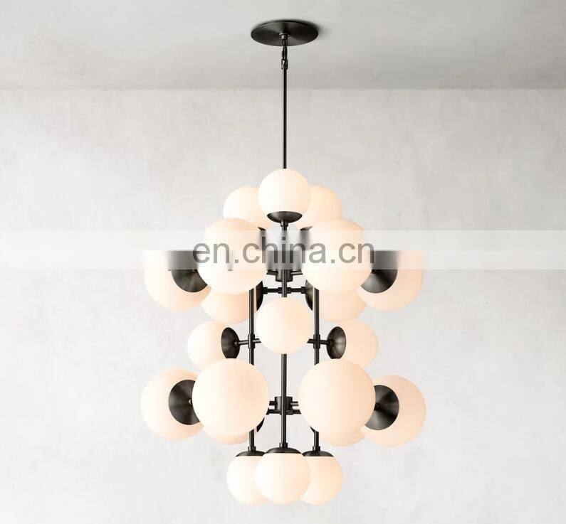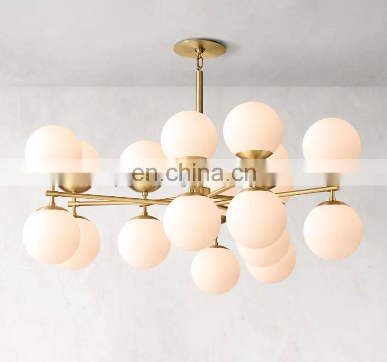 Home > Products > American Chandelier > Modern Cirque Brass Opal Matte Glass Decorative Hotel Ceiling Decoration Chandelier for Living Room