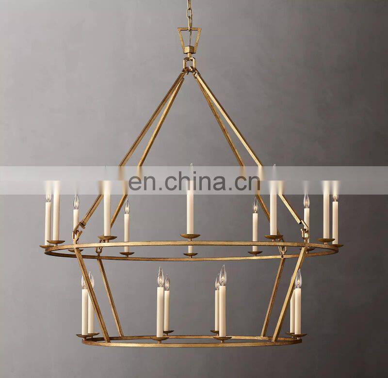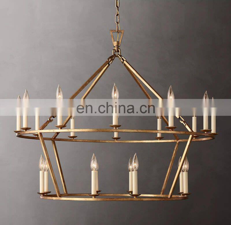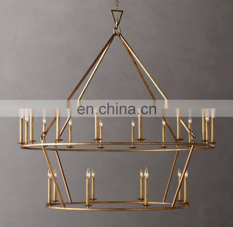 Modern Luxury Dining Large Glass Gold 19TH C. ENGLISH OPENWORK Two-Tier Round Chandelier For Living Room Bedroom