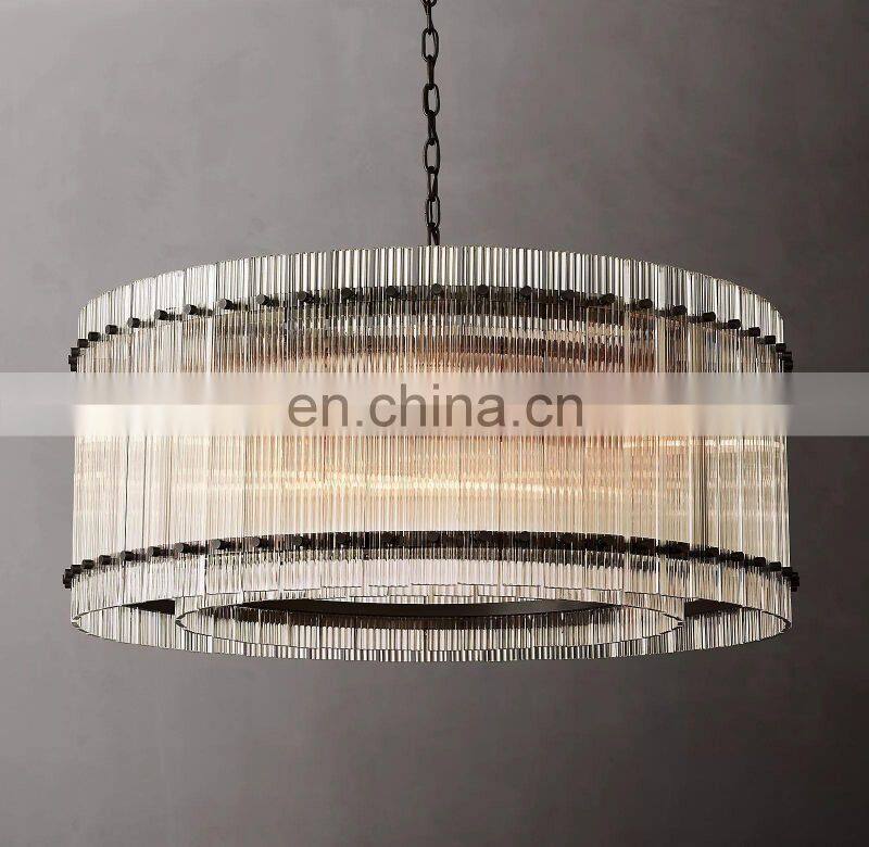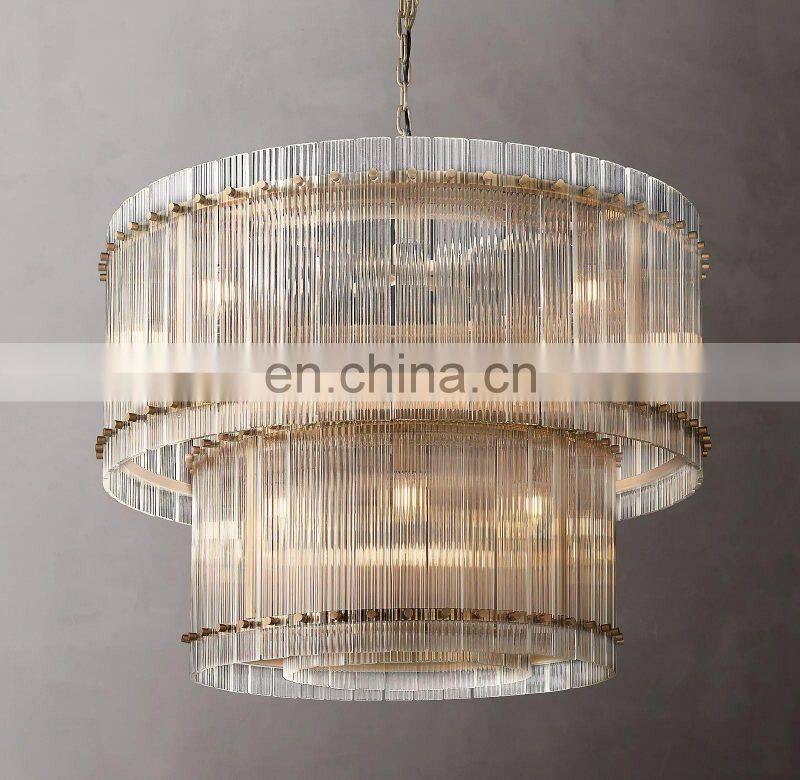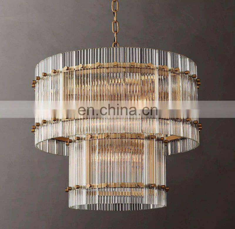 Retro Luxury Round Tier Living Room Decoration Brass Chandelier Kitchen Bedroom Ceiling Pendant Lights