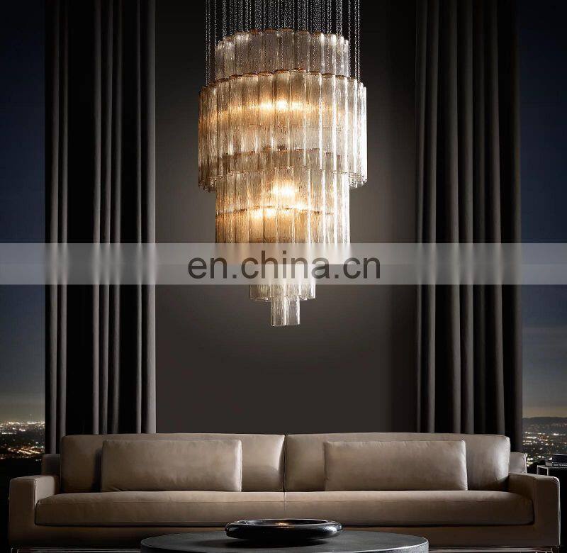 Modern Luxury Serenella Cylindrical Hanging Glass LED Chandelier for Home Hotel Bar Ceiling Suspension Chandelier