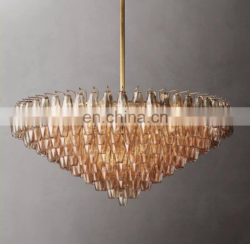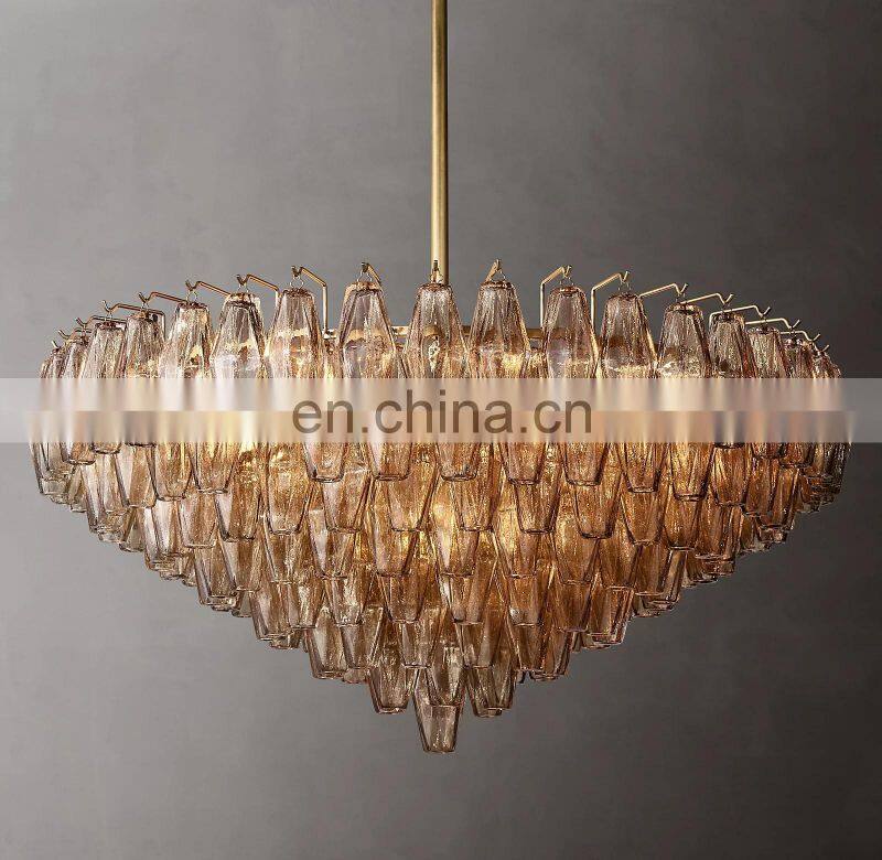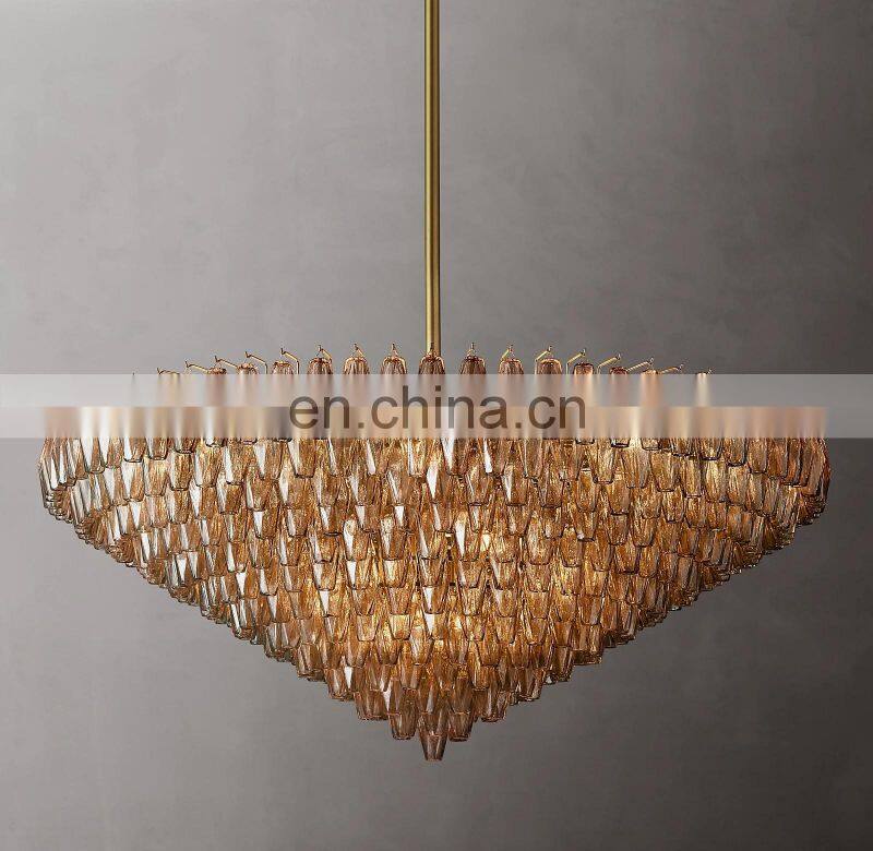 Retro Luxury Round Tier Living Room Decoration Brass Chandelier Kitchen Bedroom Ceiling Pendant Lights