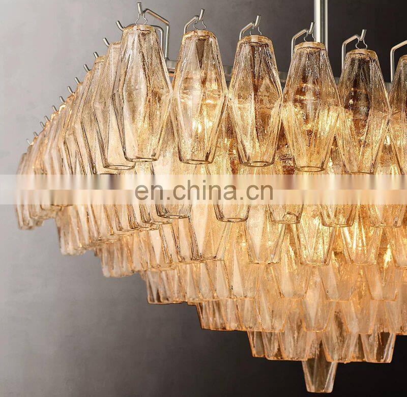 Luxury Living Room Dining Room Bedroom Hotel Decoration Openwork Decoration Modern Rectangular Glass Led Chandelier