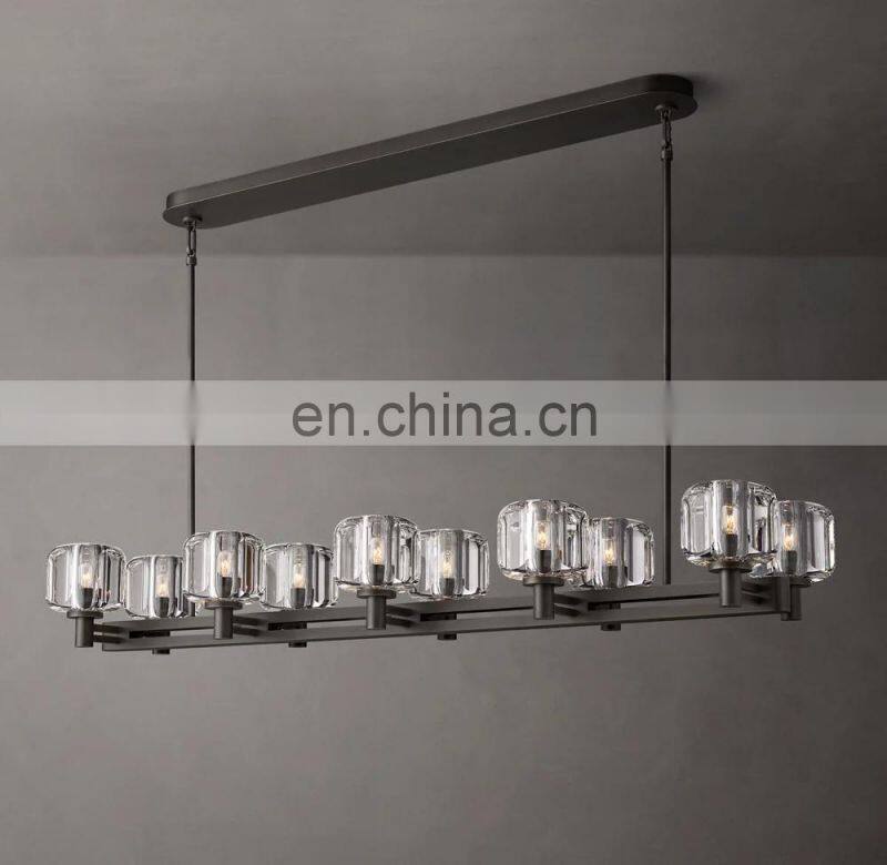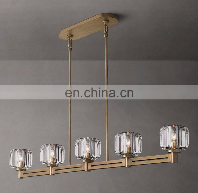 American Living Dining Room Linear Rectangular Pendant Light Lamp Modern Led Lighting Kitchen Brass Chandelier With Shade