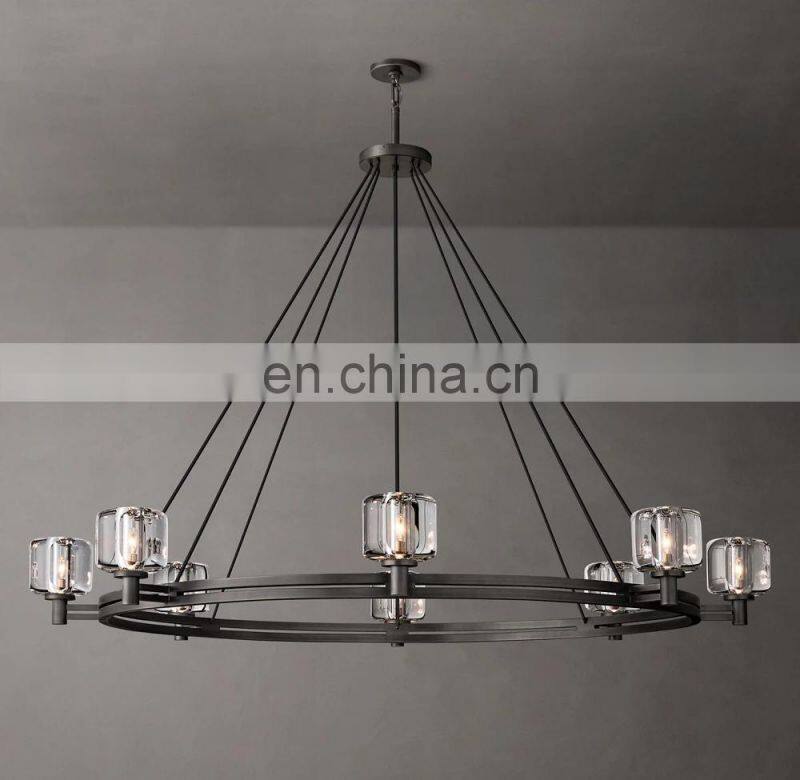 Retro Style Indoor Decoration Rectangular Industrial Metal Chandelier Living Room Hotel Ceiling Home Decor Lighting Hang Lamps