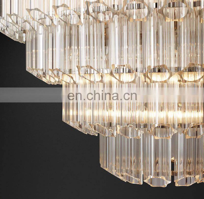Indoor Decoration Round Lattice Collection's Interlocking Planes Glass Chandelier Rotating Staircase Living Room Lighting