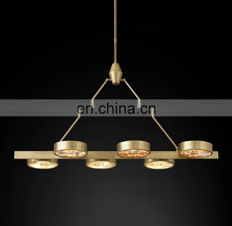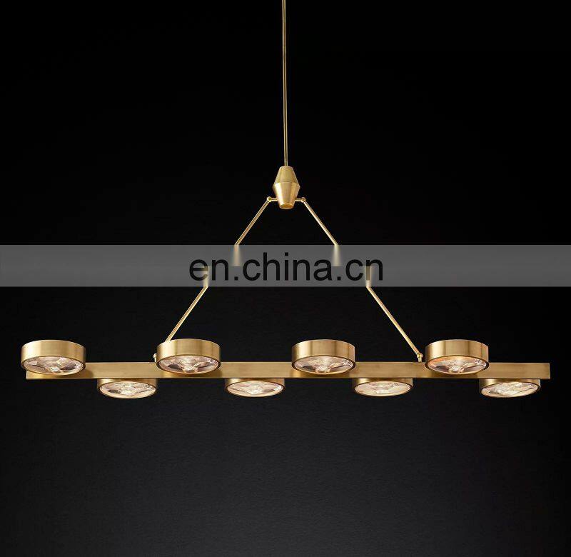 American Living Dining Room Linear Rectangular Pendant Light Lamp Modern Led Lighting Kitchen Brass Chandelier With Shade