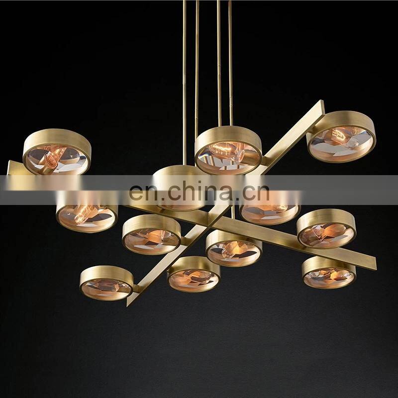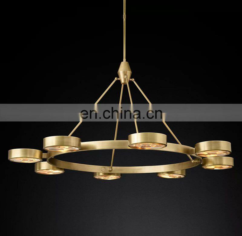 RENNES Round Golden Metal Glass Lampshade Chandelier Suitable for Ceiling Hanging Lighting in Family Hotels