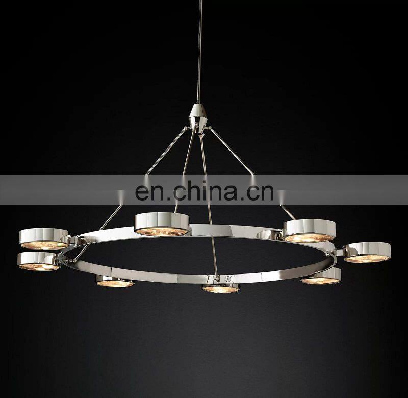 Home > Products > American Chandelier > Modern Simple Indoor Metal Linear Round Industrial Chandeliers Living Room Hotel Ceiling Home Decor Lighting Hang Lamps