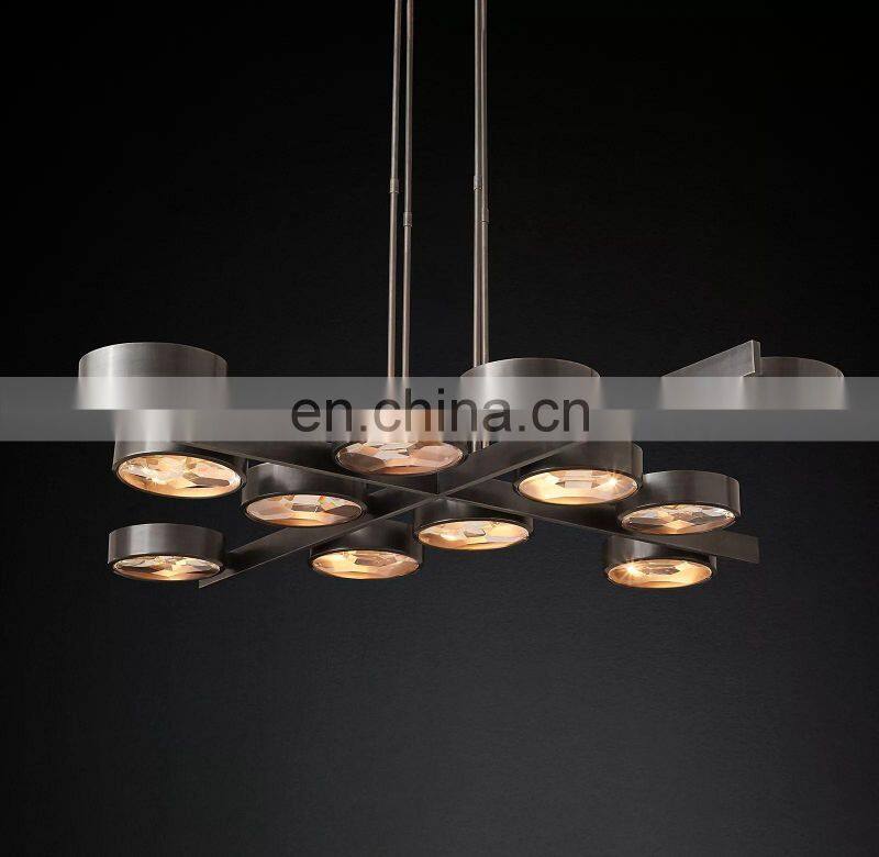 Arcachon Luxury Indoor Decoration Rectangular Industrial Metal Crystal Industrial Chandelier Living Room Hotel Lighting