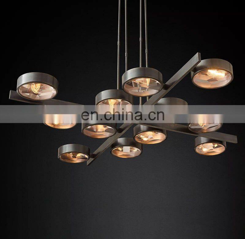 Retro Style Indoor Decoration Rectangular Industrial Metal Chandelier Living Room Hotel Ceiling Home Decor Lighting Hang Lamps