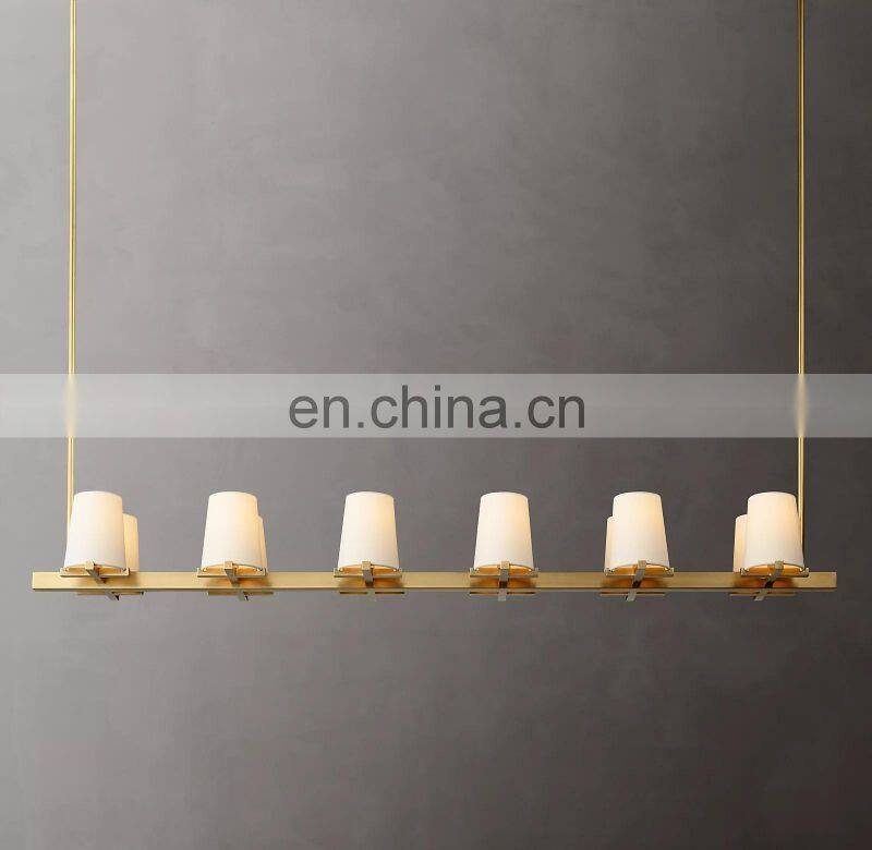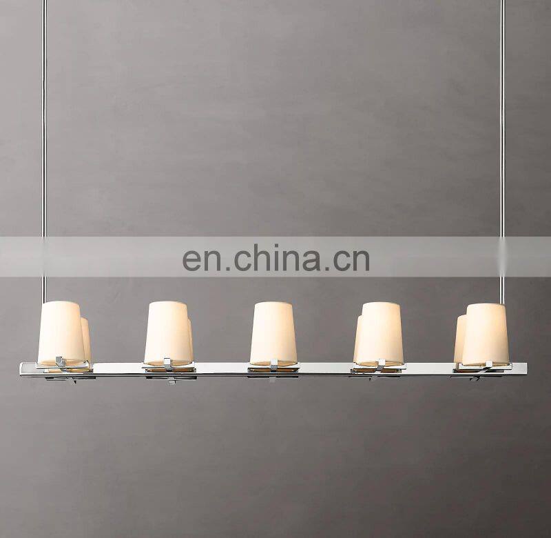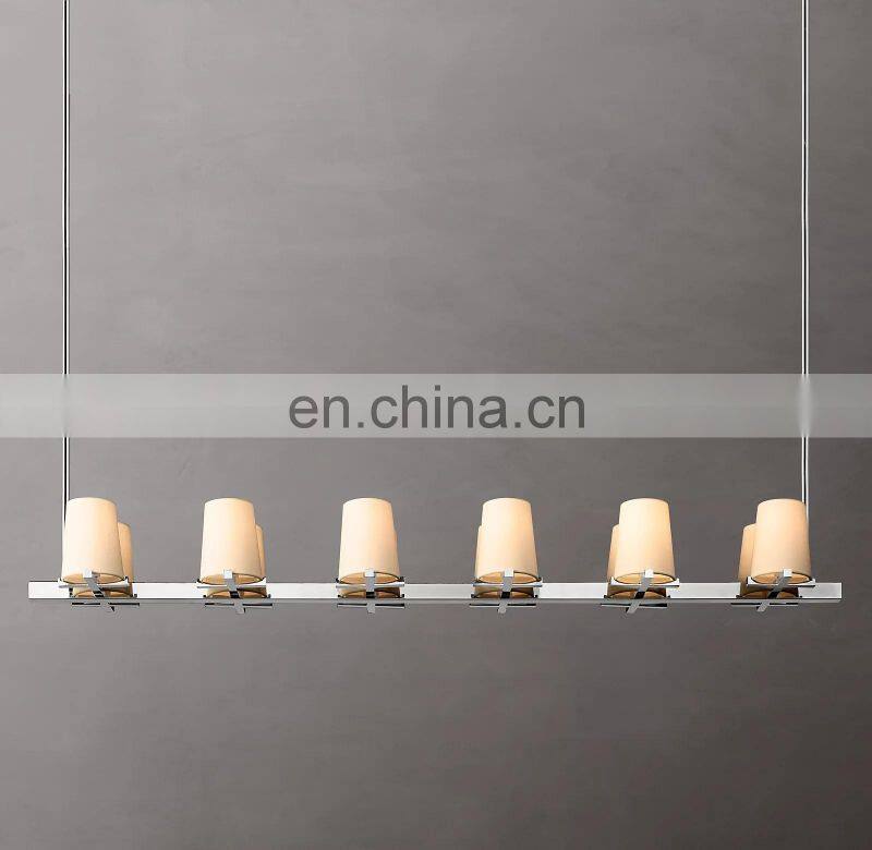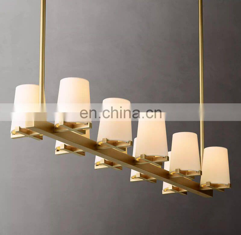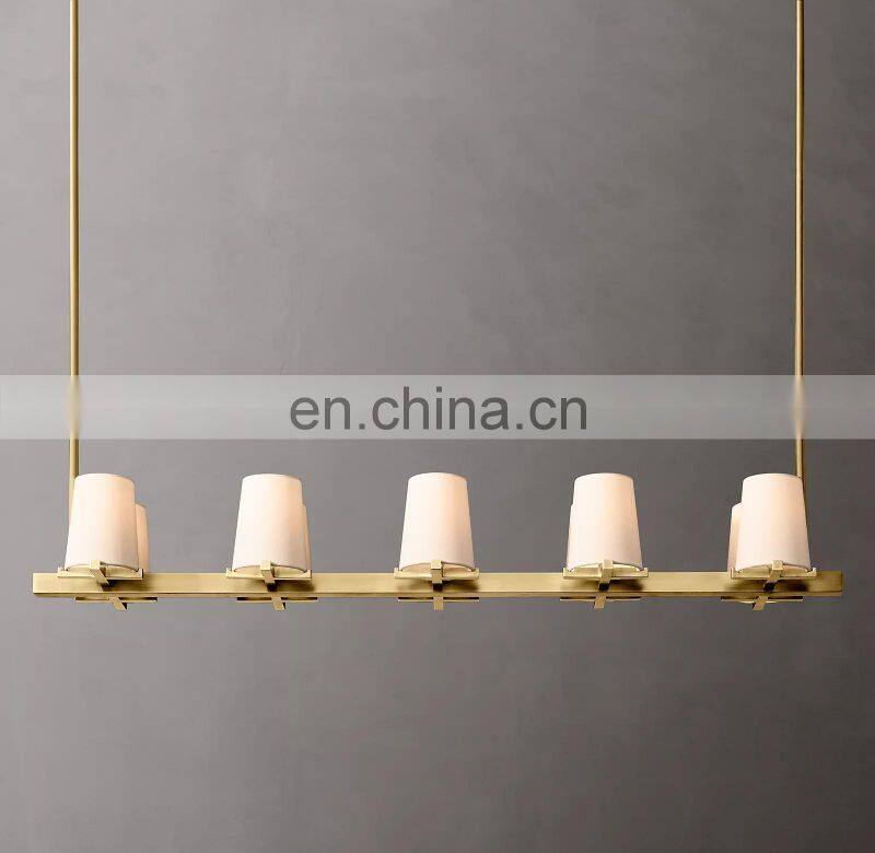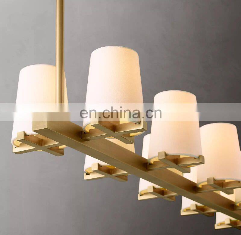 American Living Dining Room Linear Rectangular Pendant Light Lamp Modern Led Lighting Kitchen Brass Chandelier With Shade