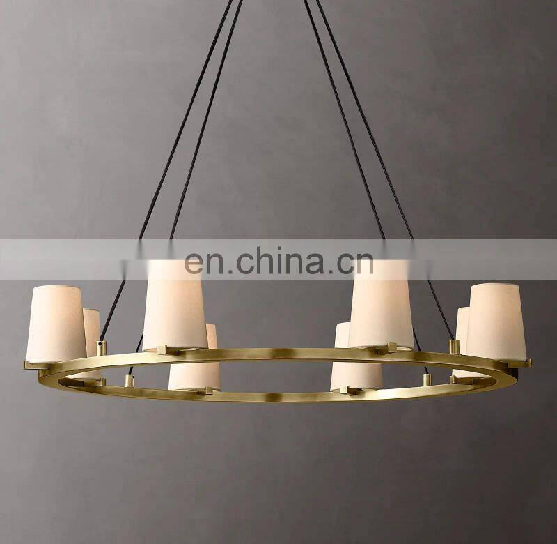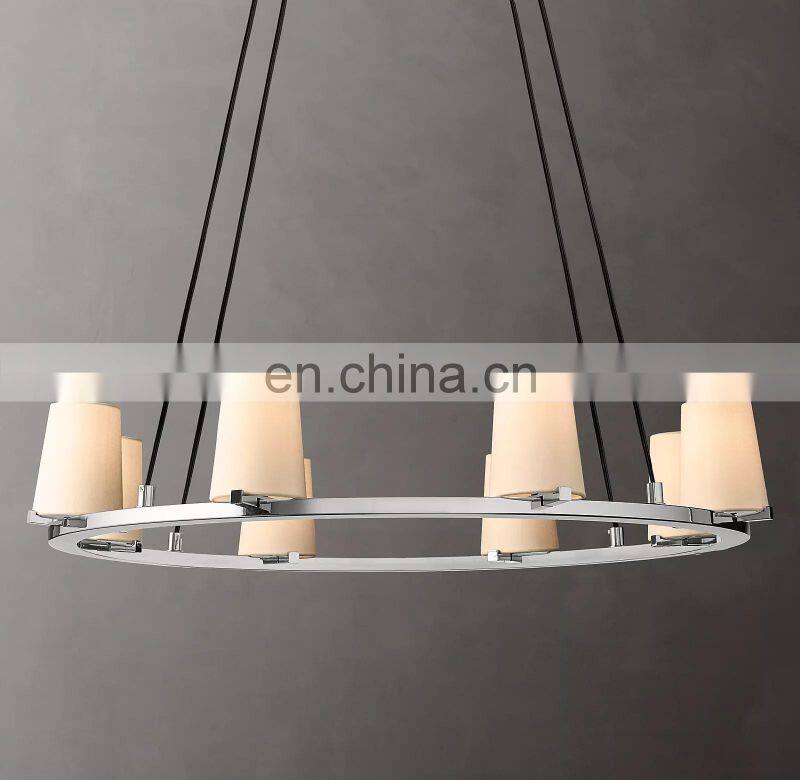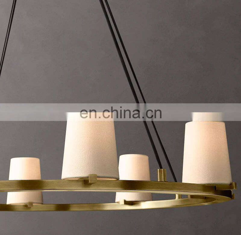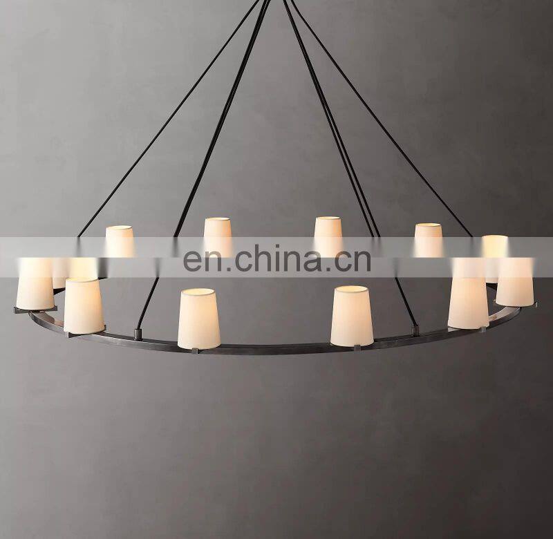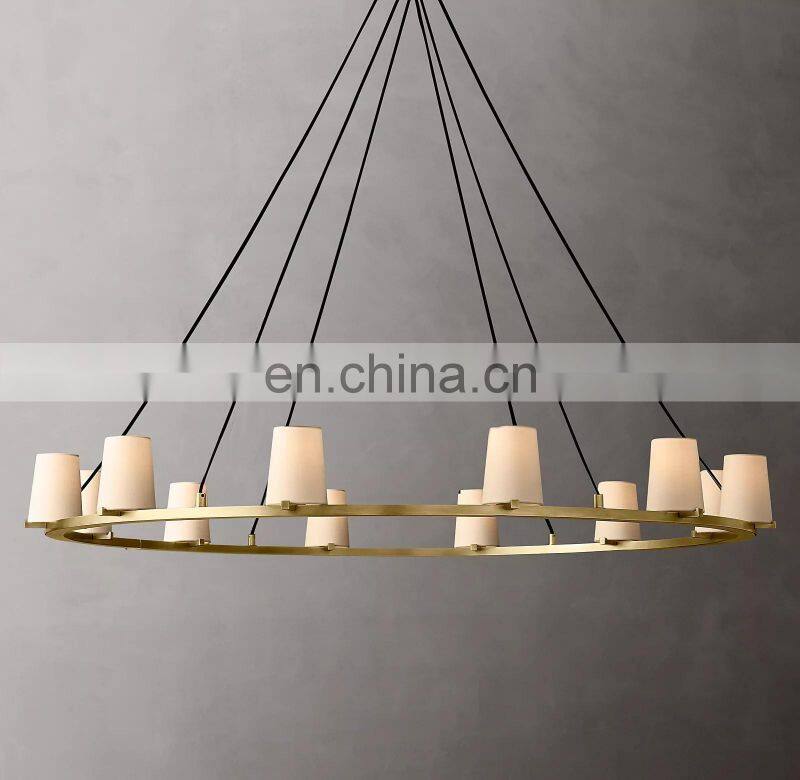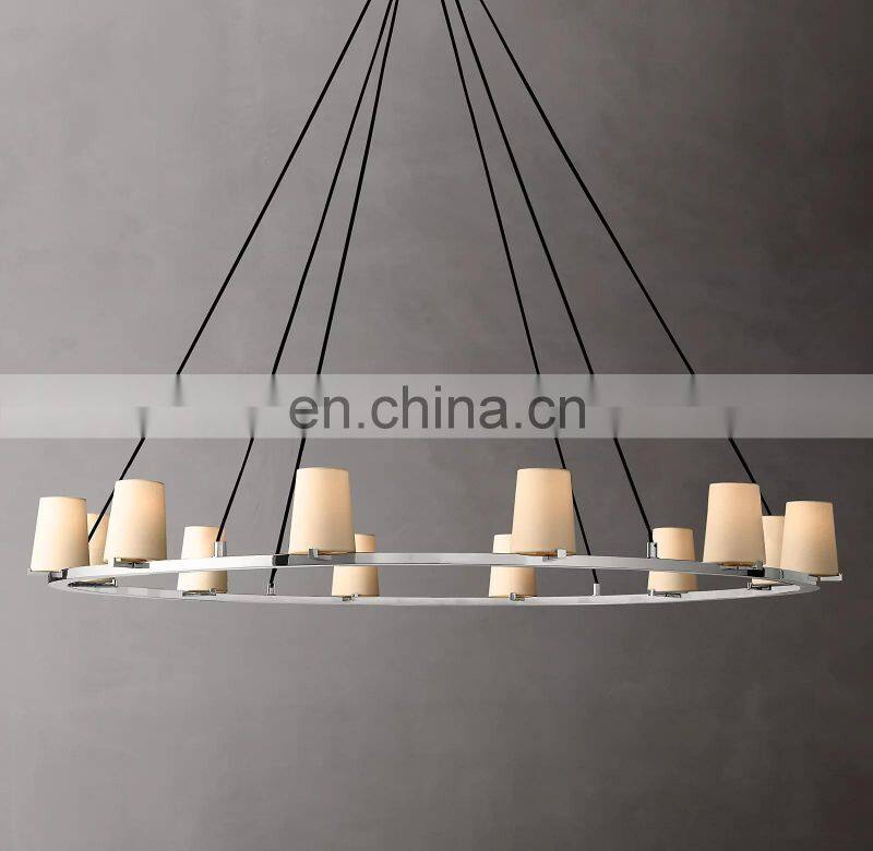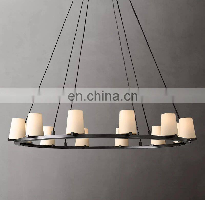 Custom Classic Retro Simple MARTINEAU Linear Tapered Oval White Linen Shade Chandelier for Home Hotel Ceiling Hanging Lighting