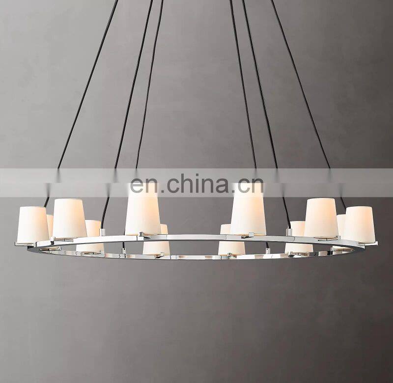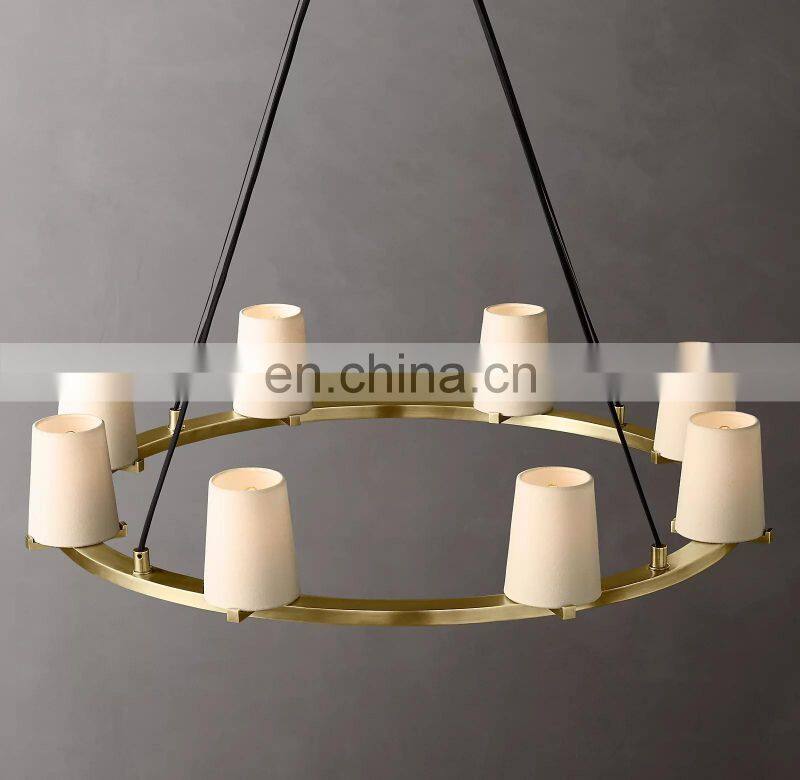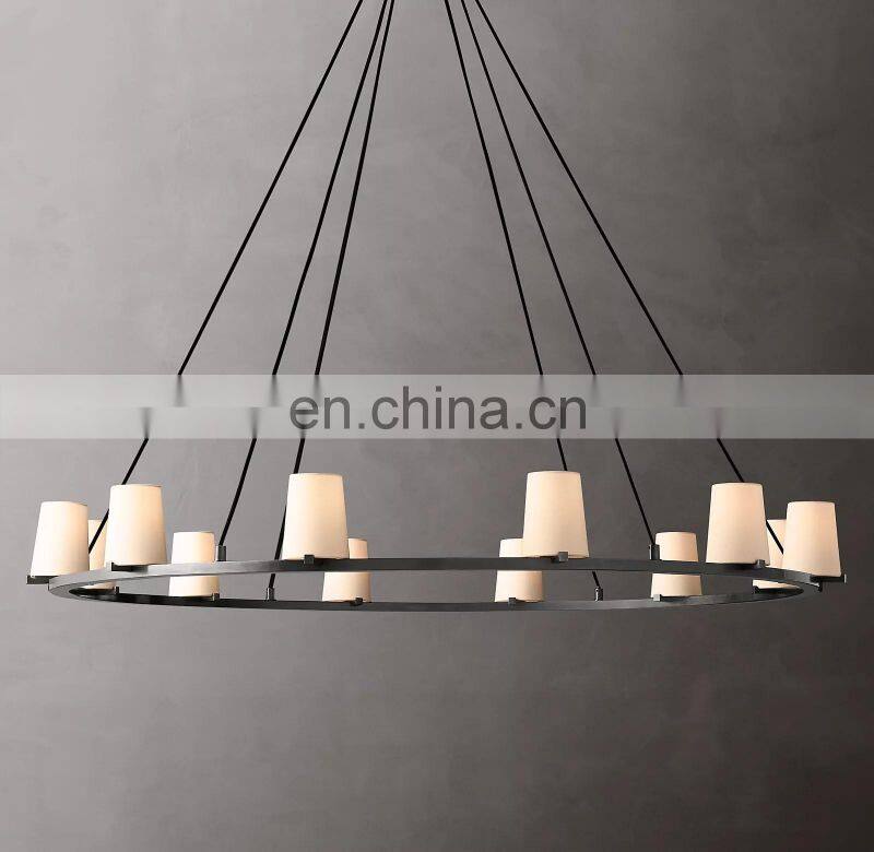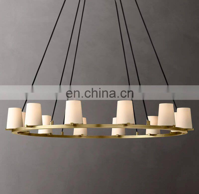 Home > Products > American Chandelier > Pauillac Fabric Shade Round Industrial Metal Alabaster Shade Chandelier Suitable for Ceiling Hanging Lighting in Family Hotels