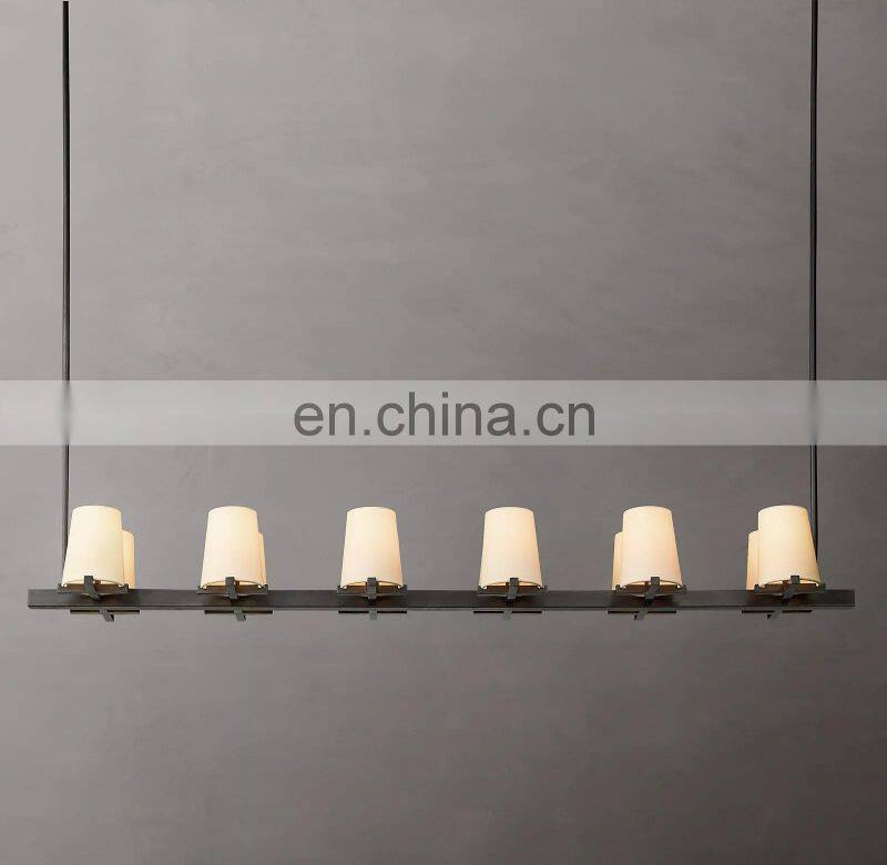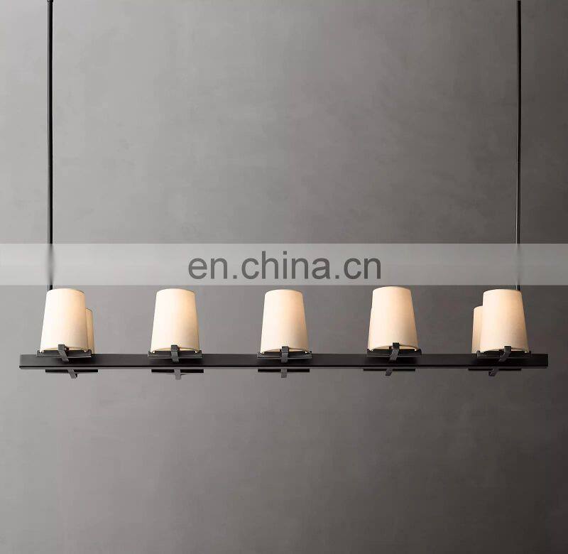Pauillac Fabric Shade Linear Industrial Metal Alabaster Shade Chandelier Suitable for Ceiling Hanging Lighting in Family Hotels