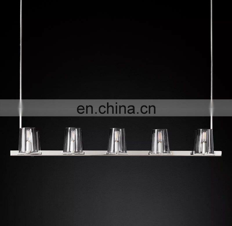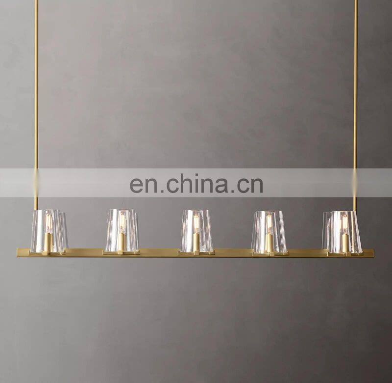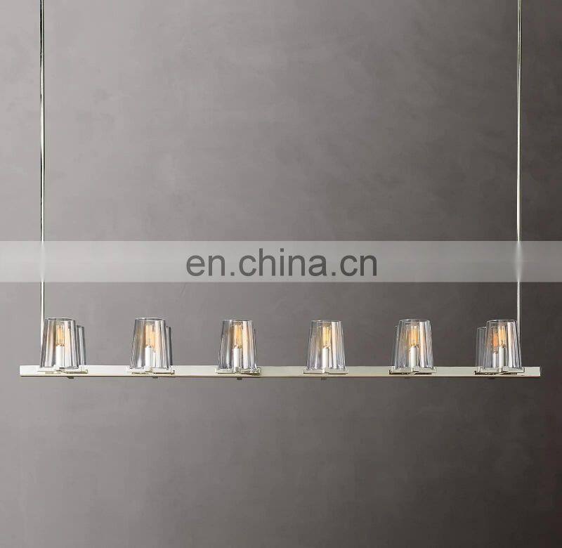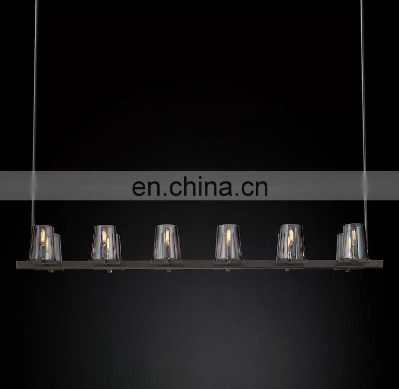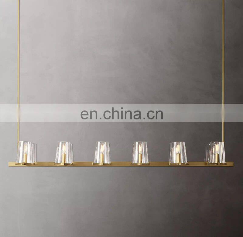 Custom Beckman Rectangular Glass Lampshade Industrial Metal Brass Chandelier Living Room Hotel Home Ceiling Lighting