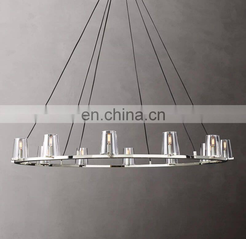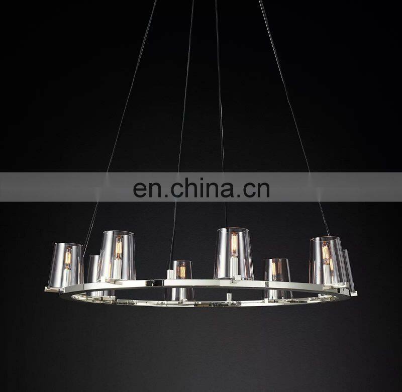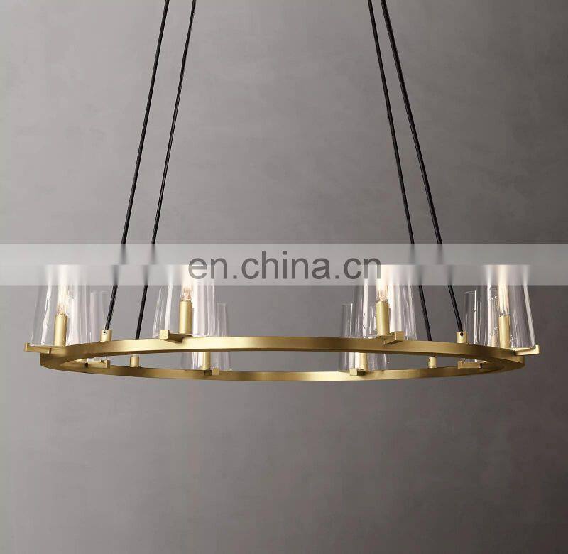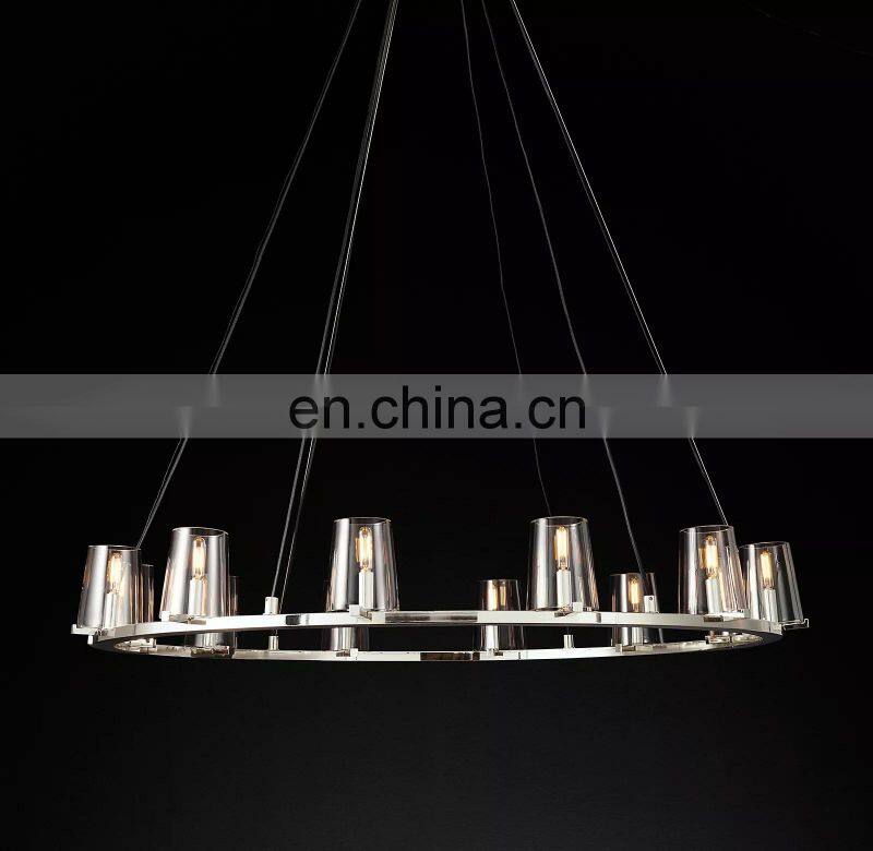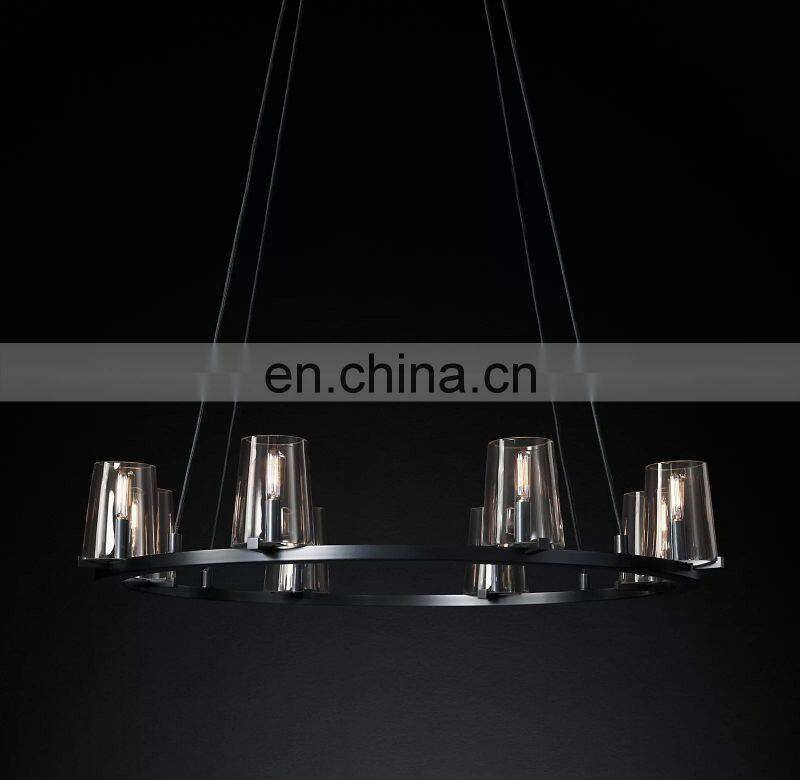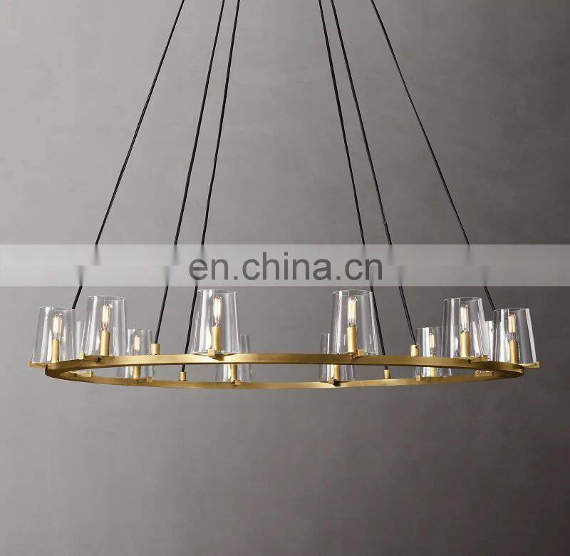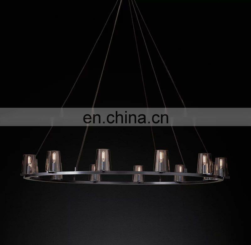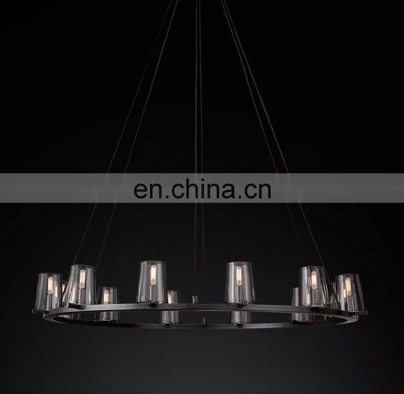 Modern Luxury American Retro Room Hotel Decoration Round Chandelier Lighting Camino Retro Filament Glass Lampshade Chandelier