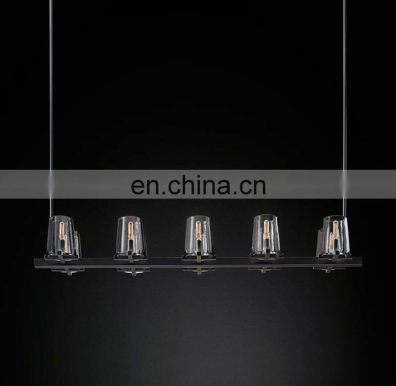 Modern Pauillac Fabric Shade Linear Industrial Black Metal Glass Shade Chandelier Suitable for Ceiling Hanging Lighting