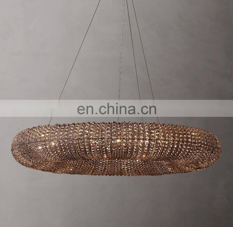 Deluxe Halo Circular Smoke Gray Crystal Industrial Metal Chandelier for Home Hotel Bar Ceiling Suspension Lighting