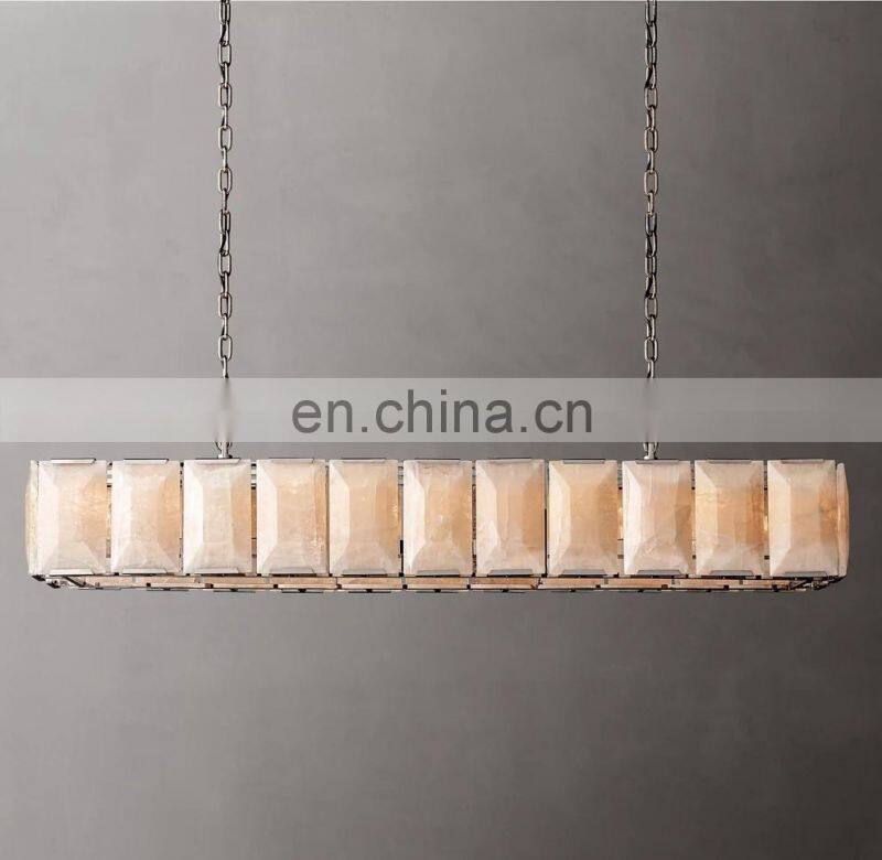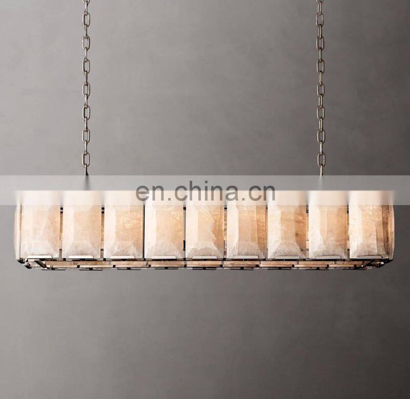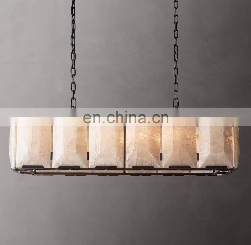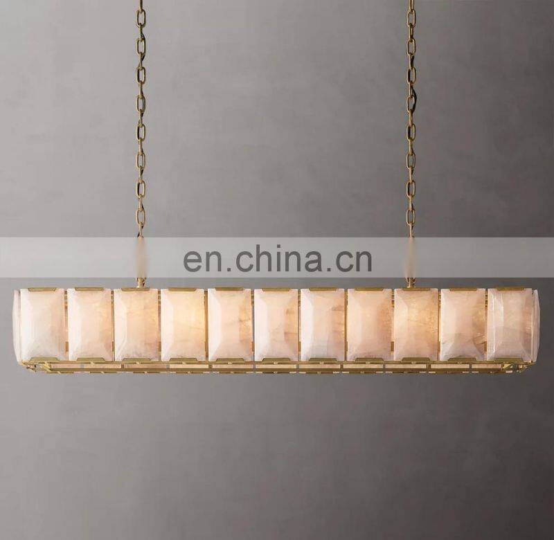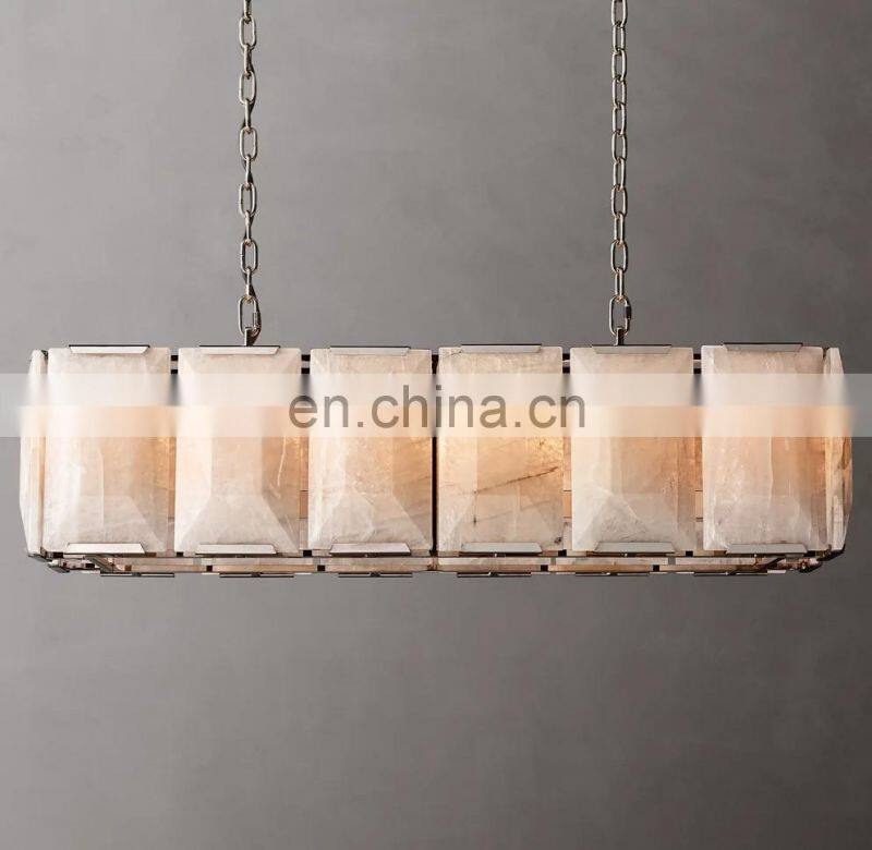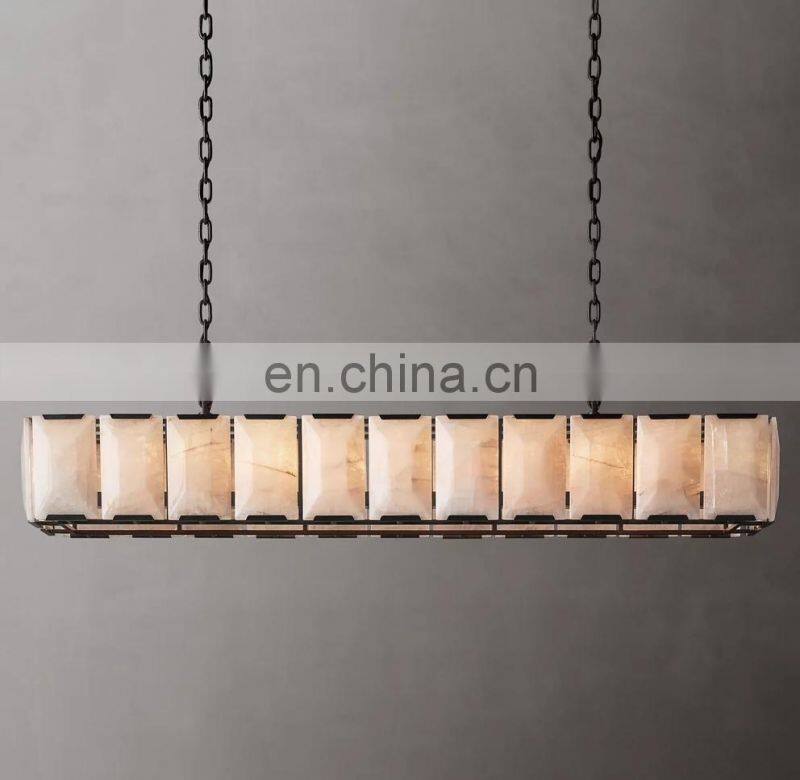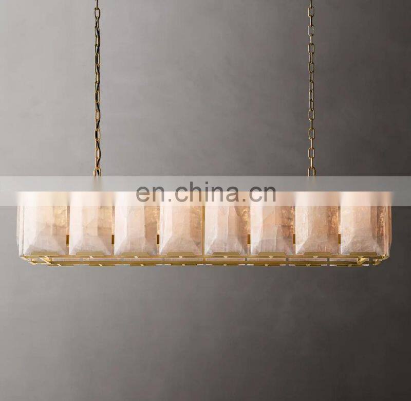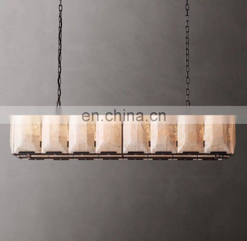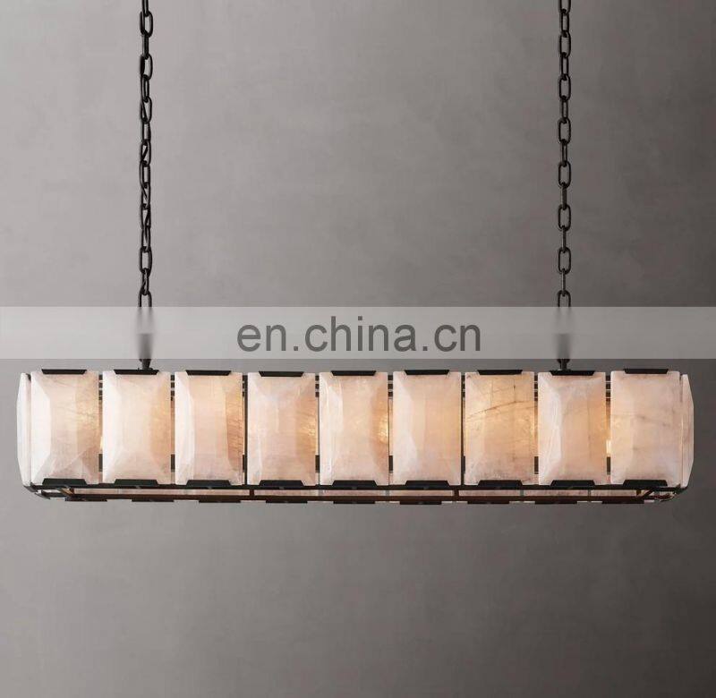 Home > Products > American Chandelier > Modern Luxury Rectangular Industrial Harlow Alabaster Chandelier For Living Hotel Ceiling Calcite Home Decor Lighting Hang