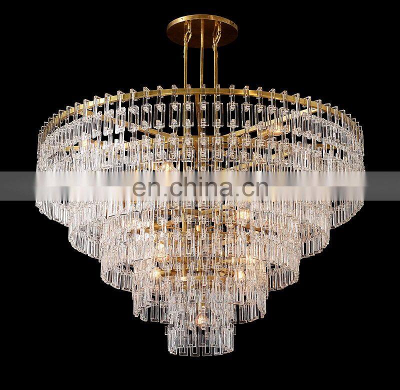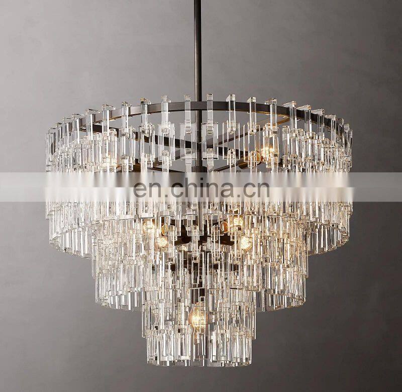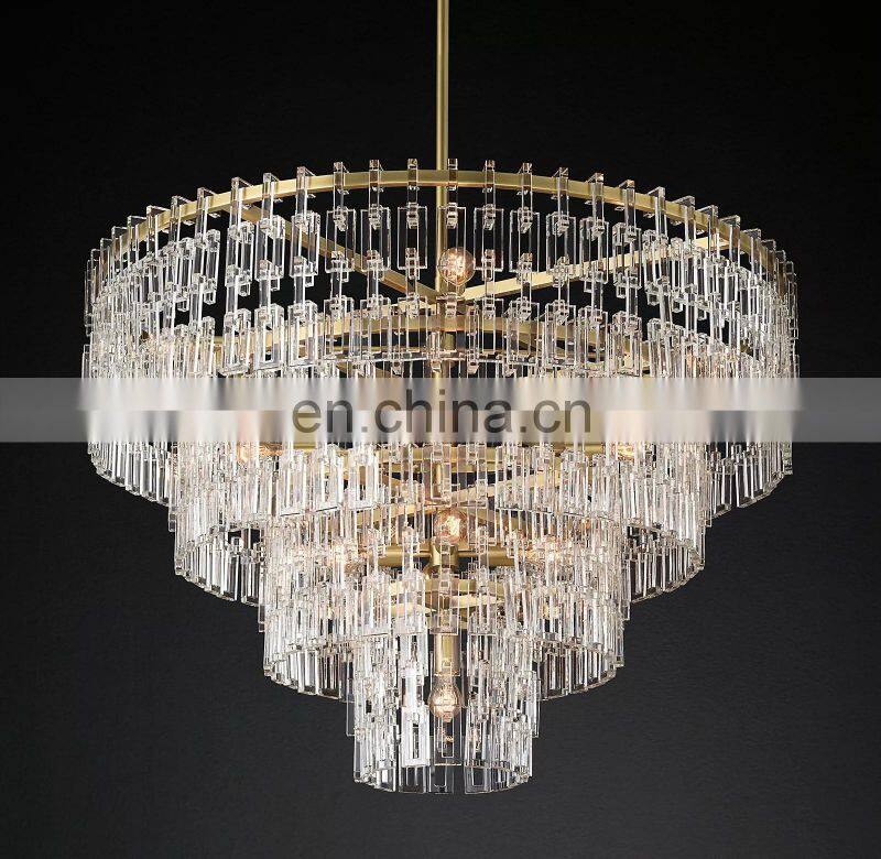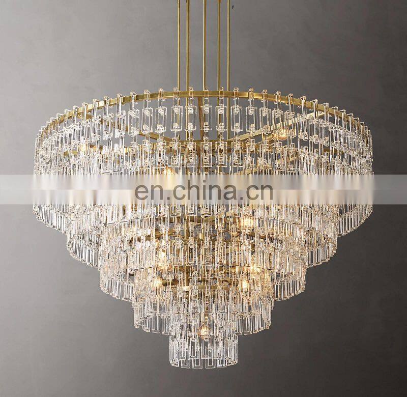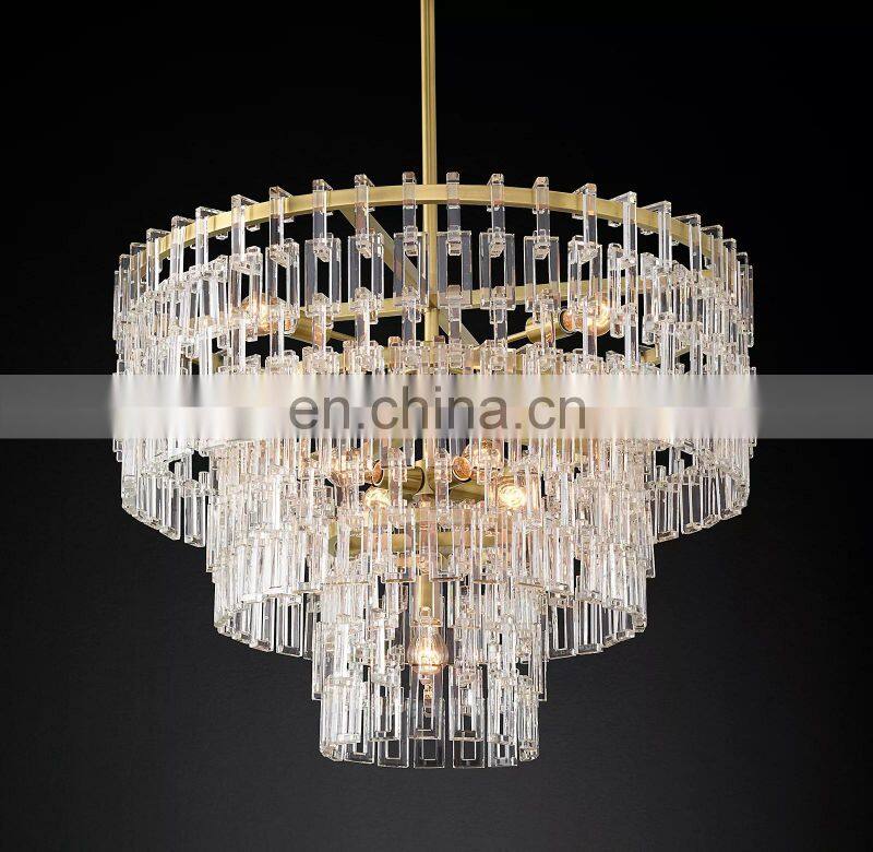 Retro Luxury Round Tier Living Room Decoration Brass Chandelier Kitchen Bedroom Ceiling Pendant Lights