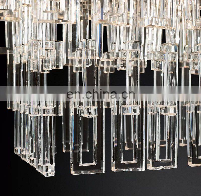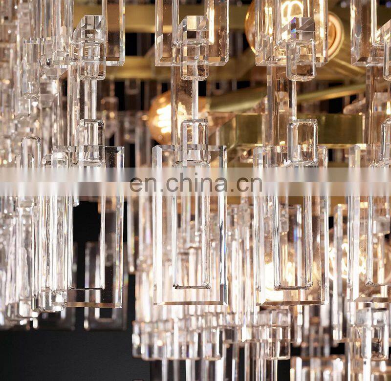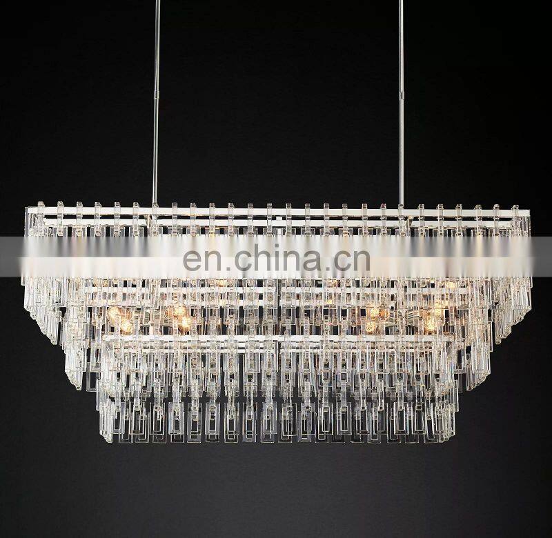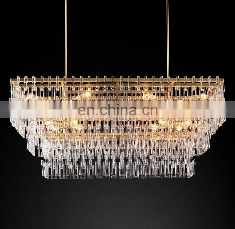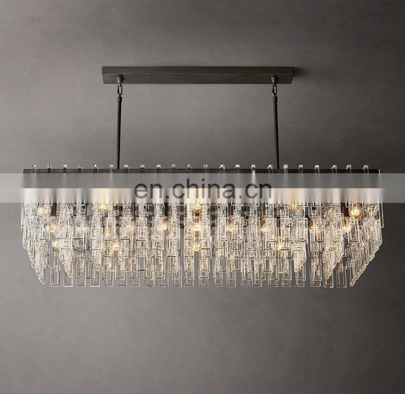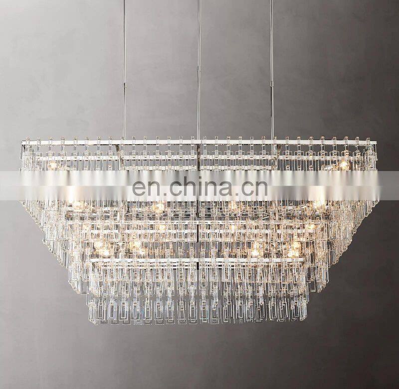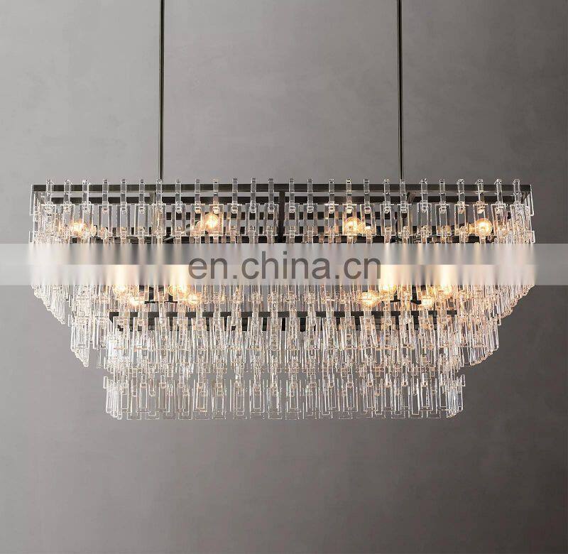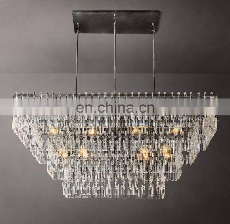 Arcachon Luxury Indoor Decoration Rectangular Industrial Metal Crystal Industrial Chandelier Living Room Hotel Lighting