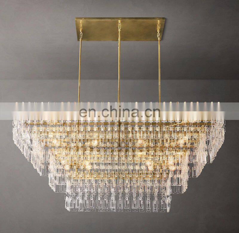 Custom Beckman Rectangular Glass Lampshade Industrial Metal Brass Chandelier Living Room Hotel Home Ceiling Lighting