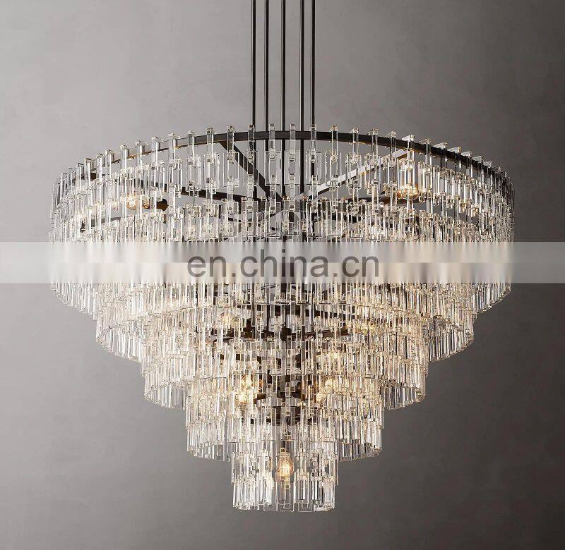 Marignan Five-Tier Round Industrial Crystal Chandelier For Living Room Hotel Ceiling Home Decor Lighting Metal Hang Lamps