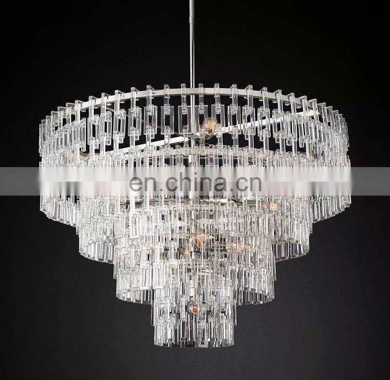 BOULE Luxury Living Room Hotel Interior Decoration Double Linear Industrial Metal Transparent Smoke Gray Crystal Chandelier