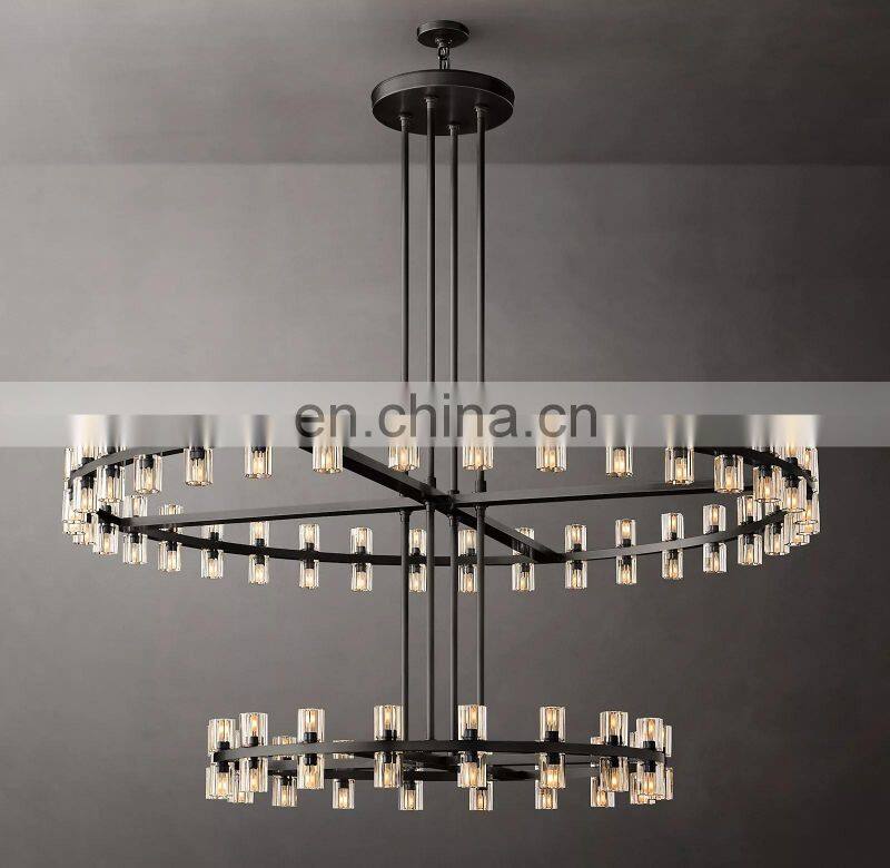 Retro Luxury Round Tier Living Room Decoration Brass Chandelier Kitchen Bedroom Ceiling Pendant Lights
