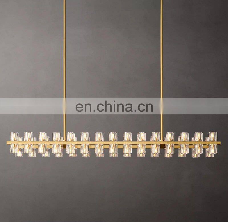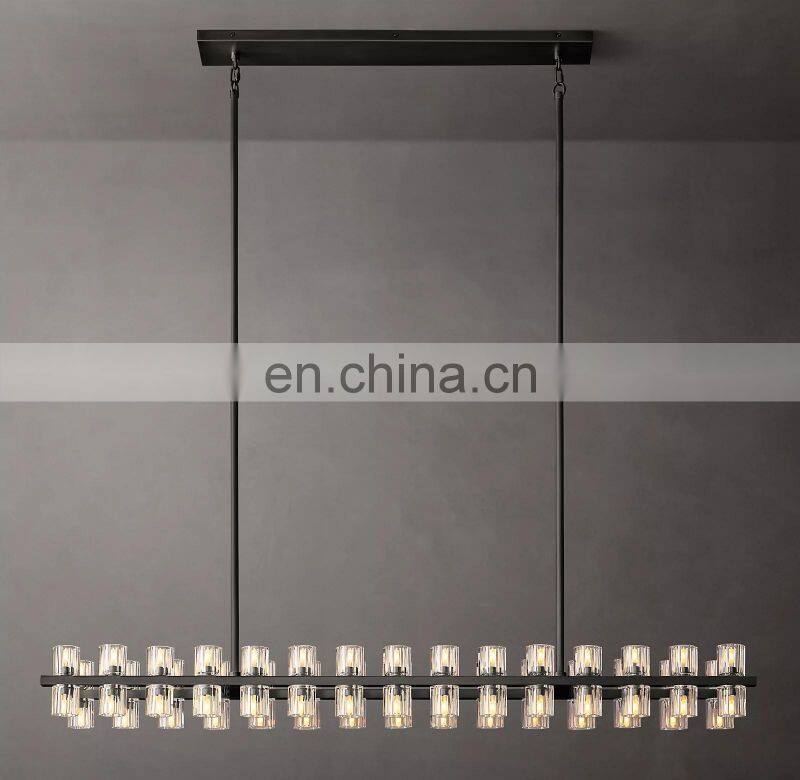 Custom Beckman Rectangular Glass Lampshade Industrial Metal Brass Chandelier Living Room Hotel Home Ceiling Lighting