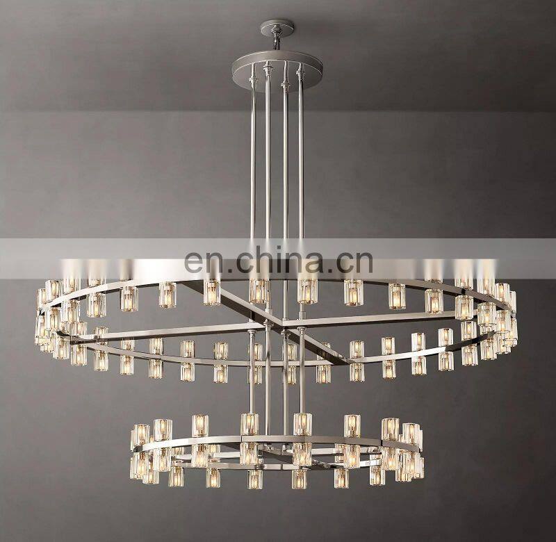 BOULE Luxury Living Room Hotel Interior Decoration Double Linear Industrial Metal Transparent Smoke Gray Crystal Chandelier