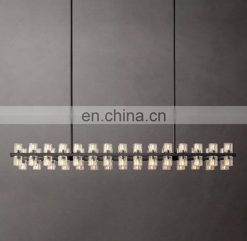 Luxury Cannele Linear Brass Industrial Glass Pendant Light for Home Hotel Ceiling Suspension Lighting