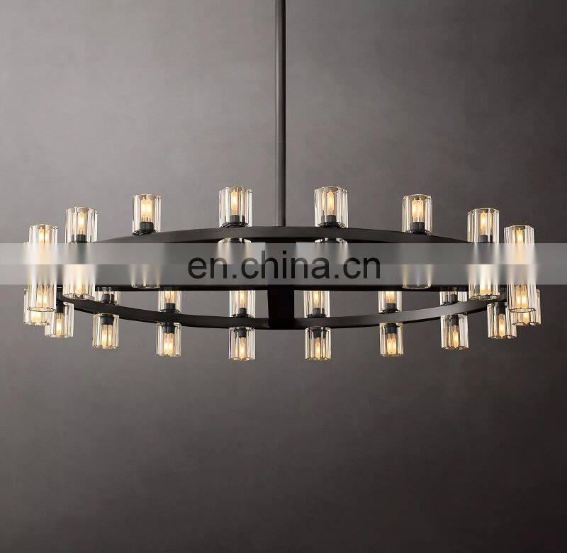 Modern Luxury American Retro Room Hotel Decoration Round Chandelier Lighting Camino Retro Filament Glass Lampshade Chandelier