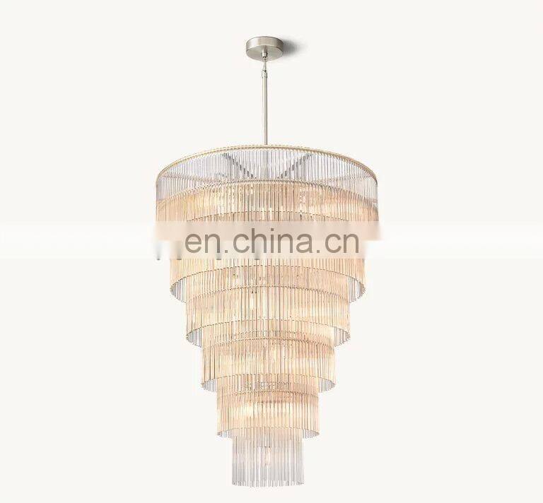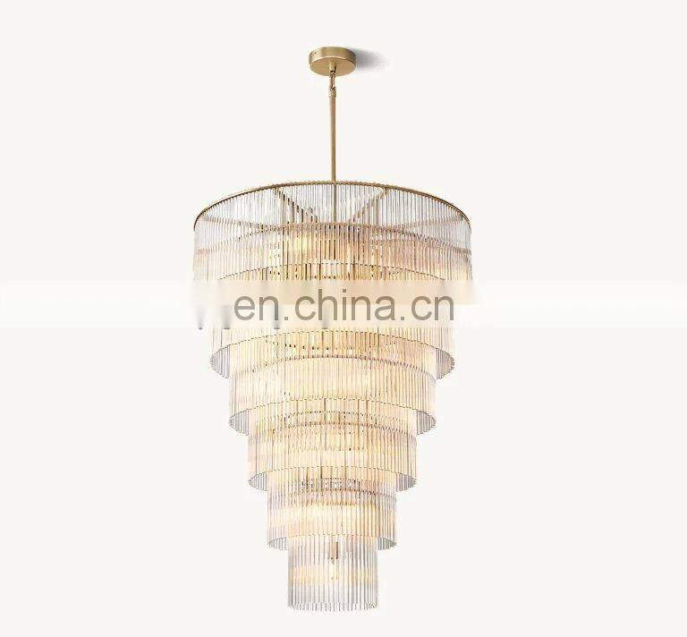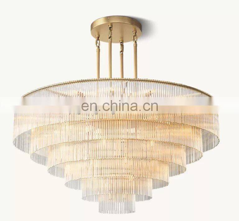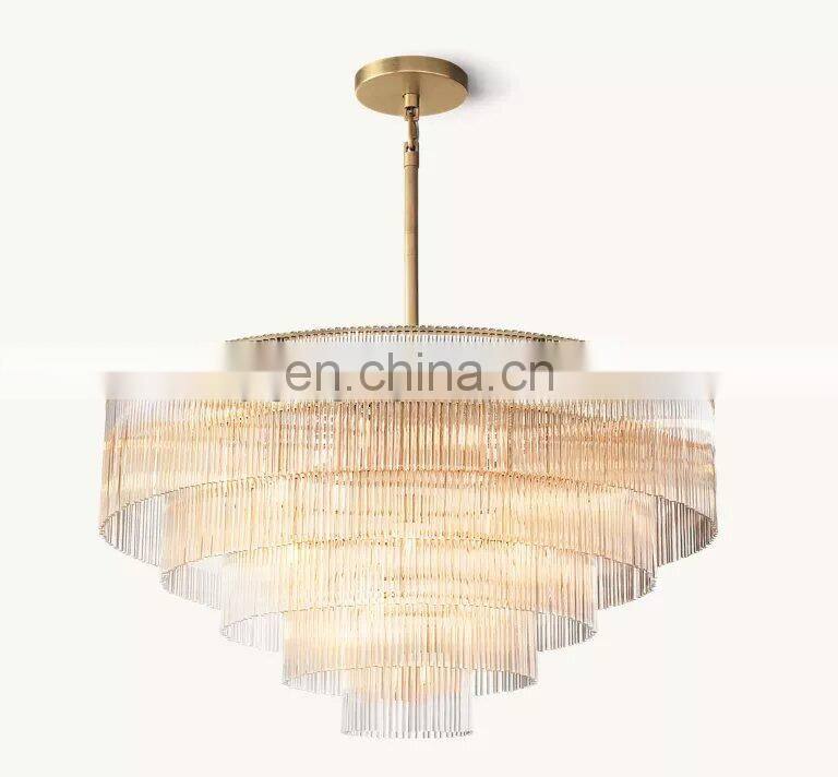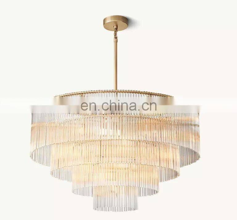 Retro Luxury Round Tier Living Room Decoration Brass Chandelier Kitchen Bedroom Ceiling Pendant Lights