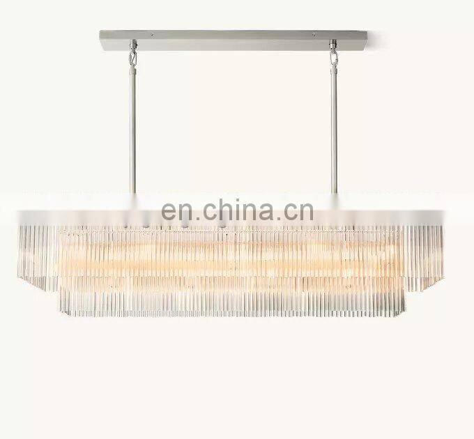 BOULE Luxury Living Room Hotel Interior Decoration Double Linear Industrial Metal Transparent Smoke Gray Crystal Chandelier