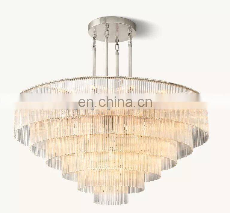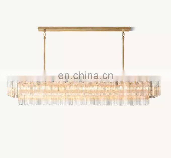Luxury Cannele Linear Brass Industrial Glass Pendant Light for Home Hotel Ceiling Suspension Lighting