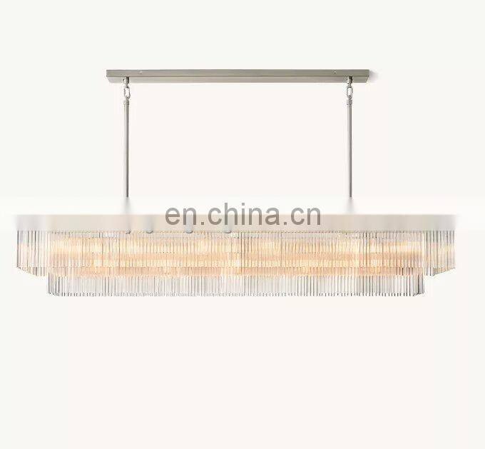 Luxury Metal Industrial Indoor Hotel Decoration Rectangular Chandelier Lighting Camino Retro Filament Glass Shade Chandelier